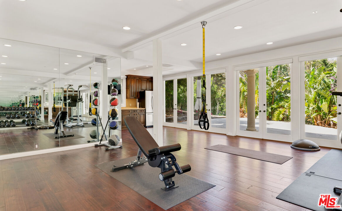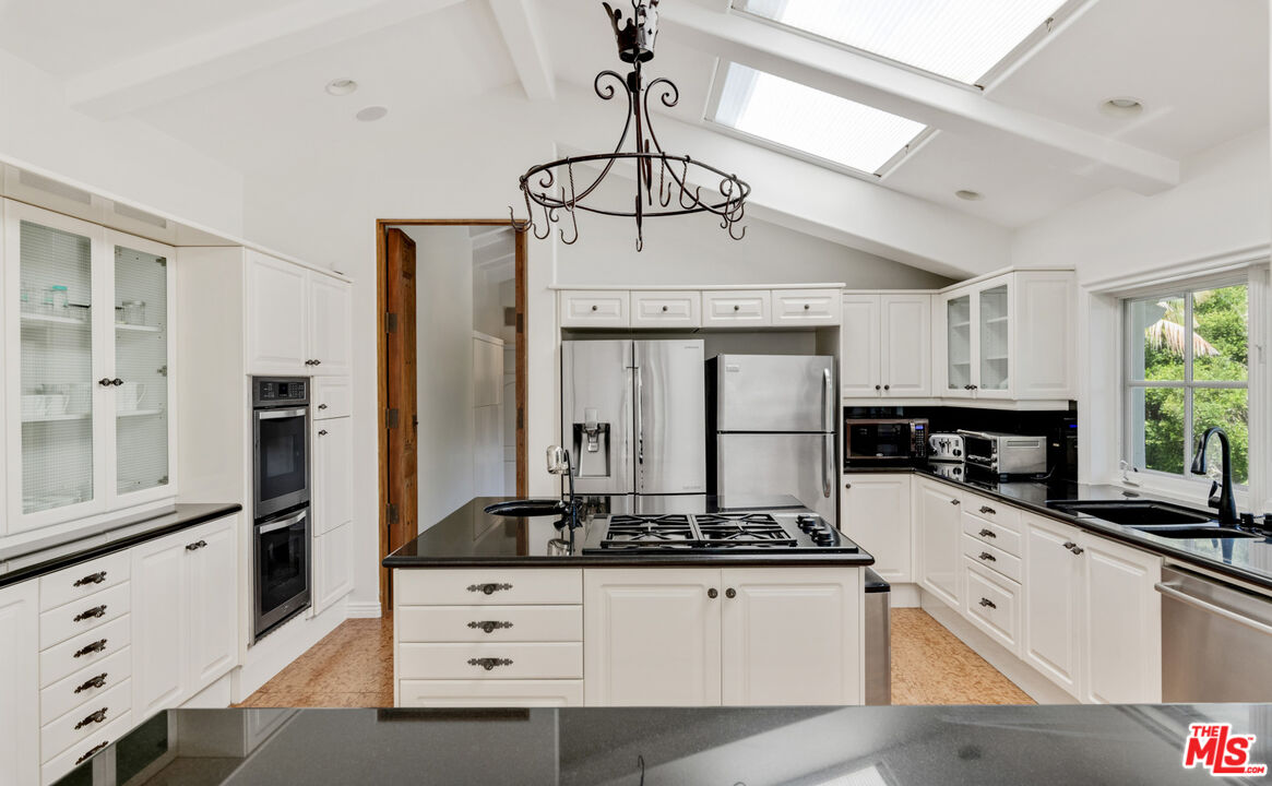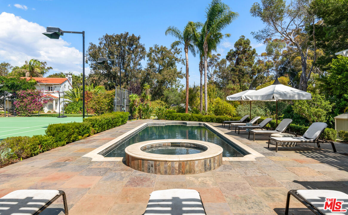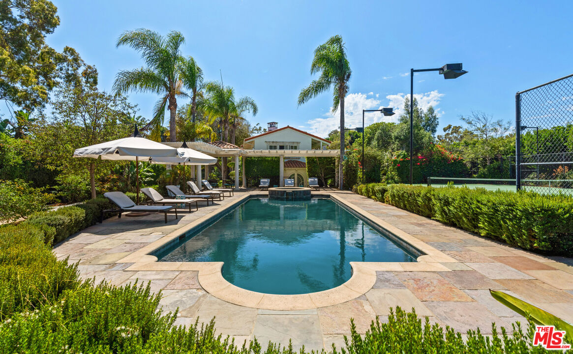 This gorgeous, resort-style Mediterranean estate is elegantly updated and meticulously maintained for a lifestyle of luxurious comfort includes beach rights to private sandy coves just minutes away. In a garden setting of more than 1.3 acres, this very private, quiet residence is both serene sanctuary and entertainers delight. Exceptional detailing creates an atmosphere of elegance highlighted by vaulted ceilings, arched doors and windows, wide-plank hardwood floors, and abundant views onto luxuriant landscaping. With dual gates offering convenient access, the home is surrounded by expansive lawns and manicured grounds, including numerous tall palms and fruit trees. From the front drive, symmetrical double staircases lead up to the pergola entry and soaring art-glass front doors. The welcoming foyer steps up into a grand-scale living/dining great room, complete with high, coffered ceilings, skylights and clerestory windows, a wide stone fireplace, built-in display shelving, and lustrous wood floors. From the dining area, French doors open into the chandelier kitchen, which has skylights, black granite countertops, stainless appliances, bar seating, and a bright, spacious breakfast room with huge windows and French doors to a wraparound balcony. Adjacent to the kitchen is a large family/media room, a bedroom, and a full bath. A hallway off the living room leads to the elegant owner's suite, which has a fireplace sitting area, two balconies, a huge dressing area and a vanity that could be a private writing desk, plus a stunning green marble bath with dual fixtures. Just outside the owner's suite, a staircase leads to a loft with a Juliet railing overlooking the living room. This lovely space, which could be an office or sitting area, opens to another balcony. On the home's lower floor, there is a huge entertainment room with built-ins, a wet bar, and doors to the backyard, plus an enormous temperature-controlled wine cellar. There are four additional bedrooms on this level as well as a laundry room. The resort-like grounds feature a sunken patio with an outdoor kitchen/barbecue and dining area, a beautiful pool and spa with generous deck space for lounging, and a lighted north/south tennis court. The drive from the front of the house leads all the way through the property to the very private guest house, which sits among verdant plantings. The lower level of this two-story structure is a large gym with hardwood floors, mirrored walls, recessed lighting, TRX hookup, and a kitchenette. There is also a laundry room and a full bath. On the upper level is a skylight living/dining room with a large fireplace, windows on three sides, plus a kitchenette and a spacious bedroom suite with a private balcony. The estate has a three-car garage, plus ample guest parking. This remarkable property, exquisitely updated, offers Point Dume living at its most luxurious.Interested in this Listing?