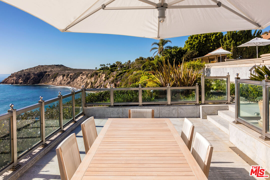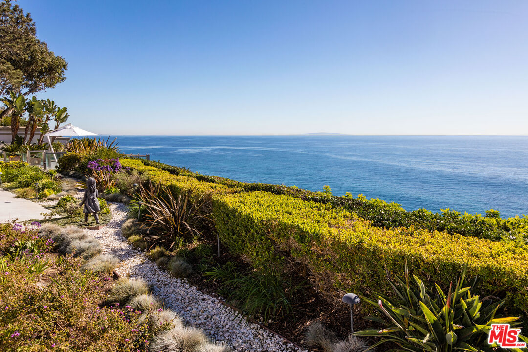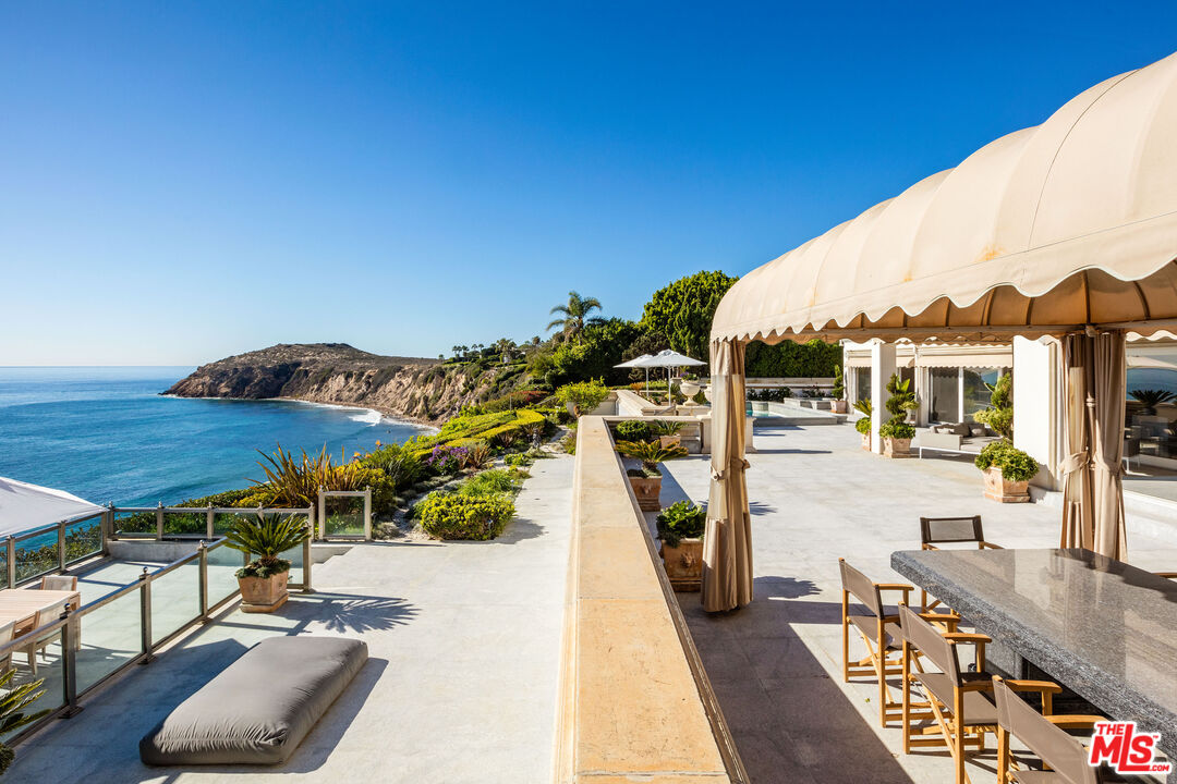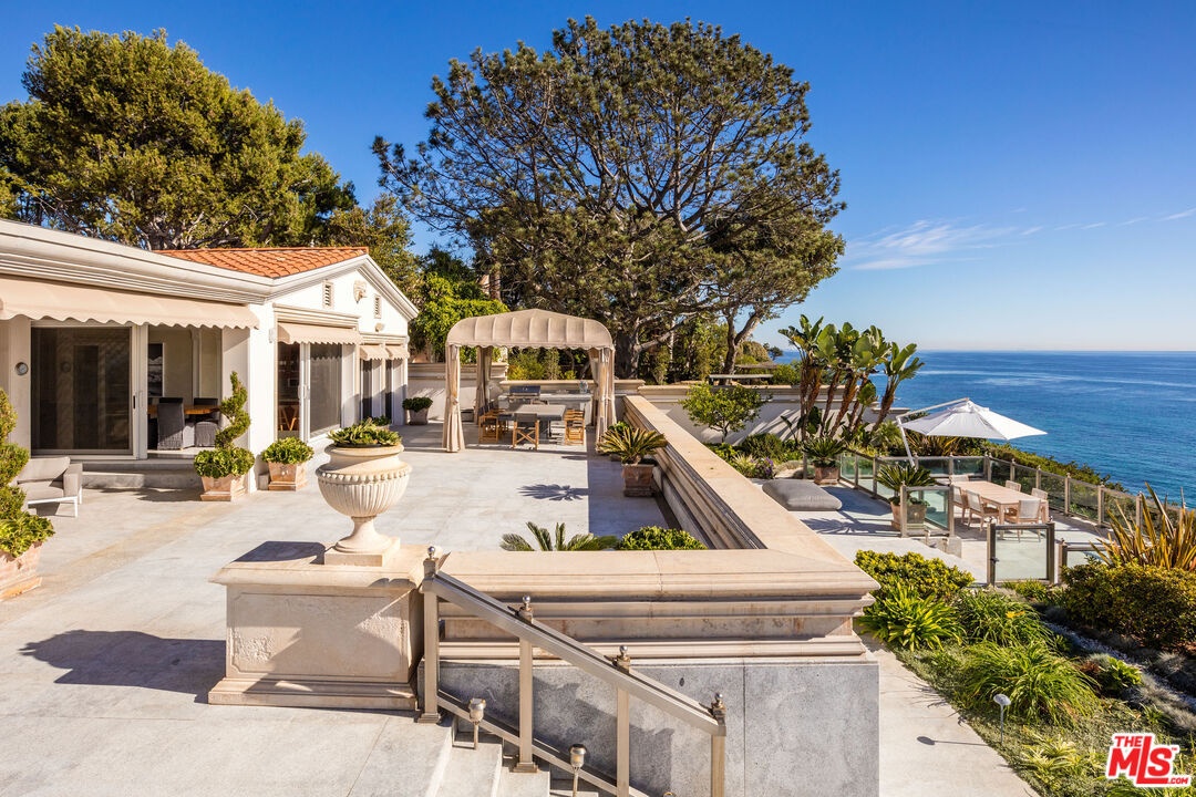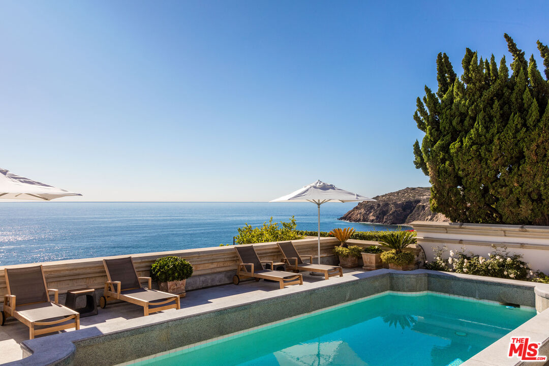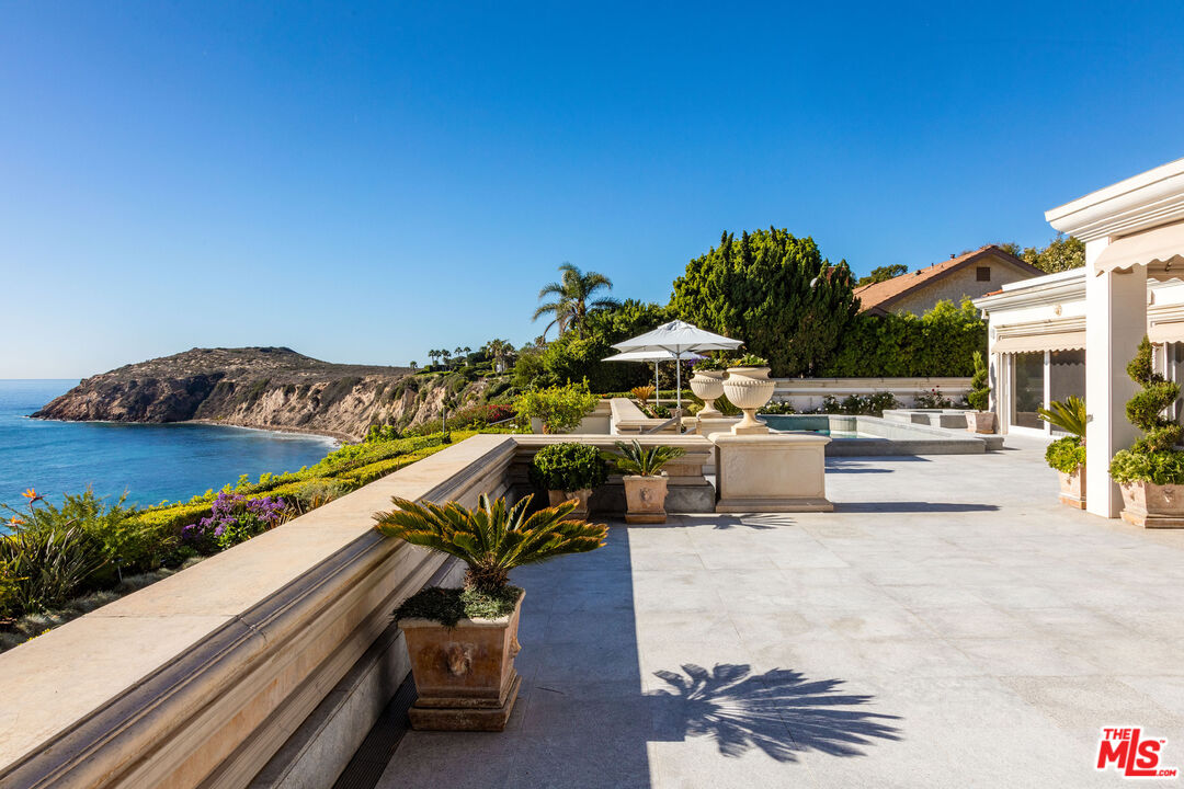 Palatial elegance, gorgeous natural light, and non-stop ocean, island, and coastline views are only part of the story in this sensational Cliffside Drive estate. Set behind beautiful gates on over an acre of majestic blufftop with more than a hundred feet of view frontage, the single-level residence is designed and finished for a lifestyle of memorable entertaining and uninterrupted comfort. The rooms are spacious, with luxurious detailing, including magnificent glass entry doors, multiple skylights and fireplaces, stunning moldings, and wainscoting, and generous built-in cabinets and storage. Seamless indoor-outdoor flow extends to dramatic terraced patios, where sunrise-to-sunset views extend to the horizon and offer ample space for recreation, al fresco dining, and gatherings large and small. The ocean-view kitchen is a chef's dream, with a huge skylight, top-of-the-line appliances, dual islands, and, just outside, an all-season ocean-view dining patio complete with barbecue and a massive stone table. There is also a covered outdoor living room and a blufftop dining patio, perfectly situated for sunset dinners as the lights of the Queen's Necklace twinkle on, plus a lovely swimming pool and spa with a surrounding lounging deck and a backdrop of perfectly manicured landscaping. The bedrooms include a getaway-from-it-all primary suite that opens onto the poolside patio and features a fireplace sitting area, a huge spa-bath, and a walk-in custom closet. Situated above Dume Cove, the property includes deeded beach rights to the private access at Little Dume. Relax, entertain, and enjoy the many pleasures of Point Dume living in this impressive and harmonious home.Interested in this Listing?