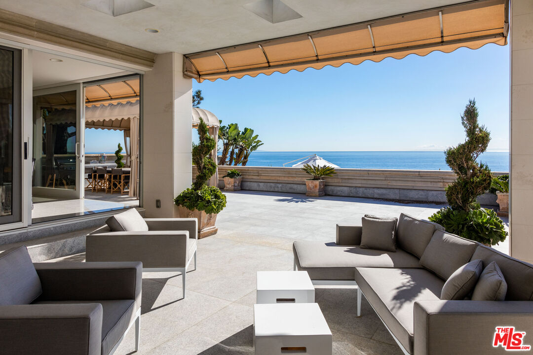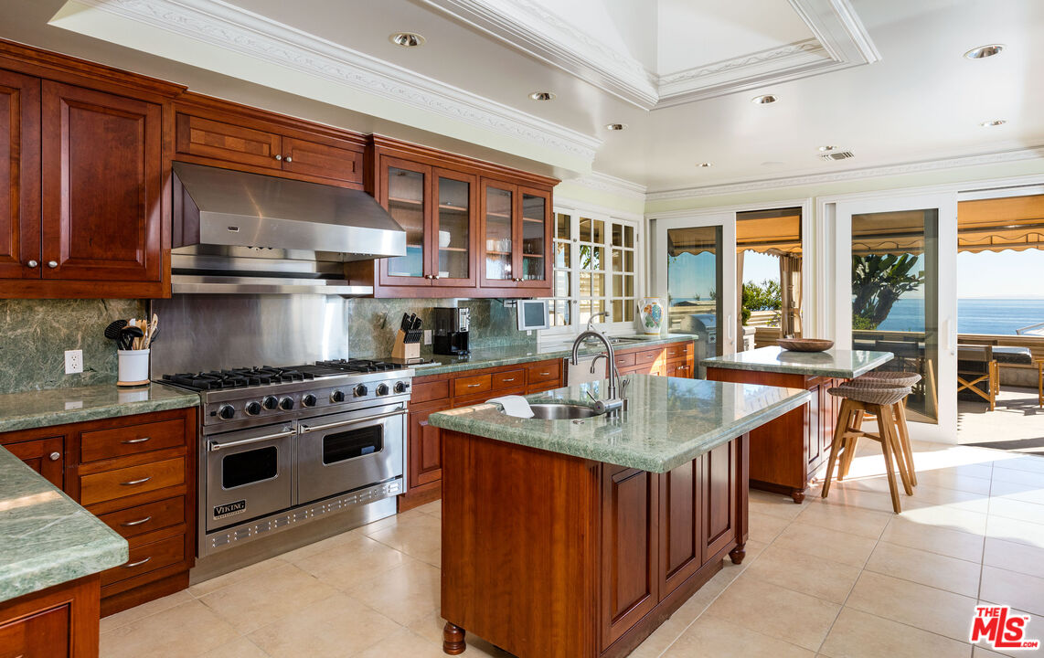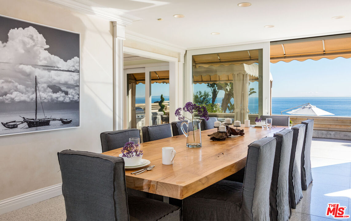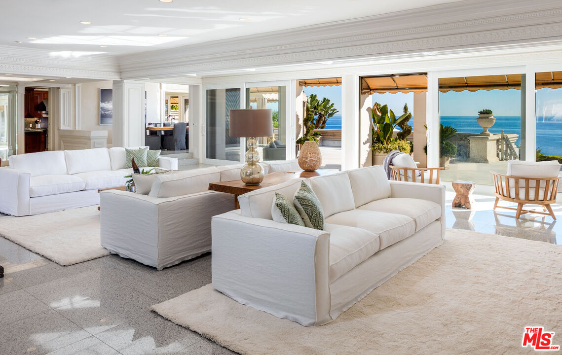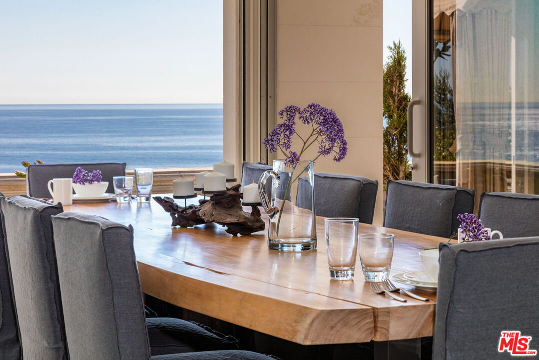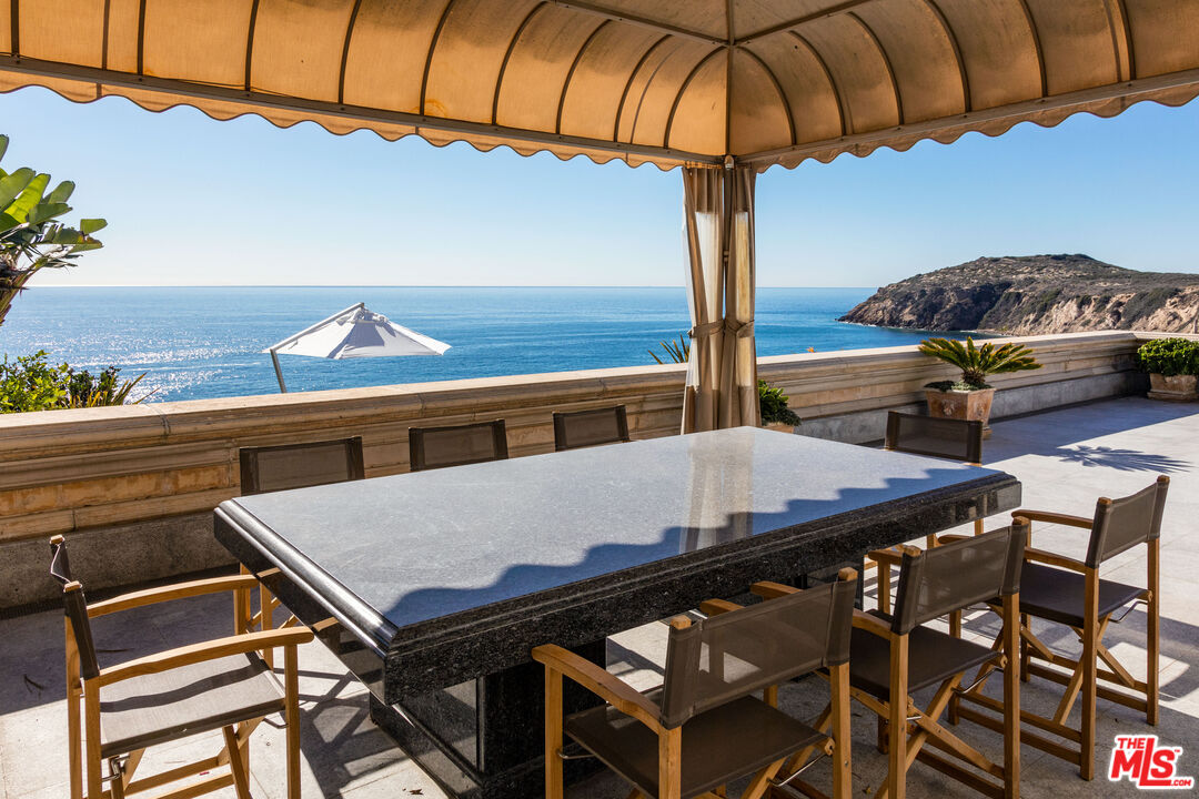 Palatial elegance, gorgeous natural light, and non-stop ocean, island, and coastline views are only part of the story in this sensational Cliffside Drive estate. Set behind beautiful gates on over an acre of majestic blufftop with more than a hundred feet of view frontage, the single-level residence is designed and finished for a lifestyle of memorable entertaining and uninterrupted comfort. The rooms are spacious, with luxurious detailing, including magnificent glass entry doors, multiple skylights and fireplaces, stunning moldings, and wainscoting, and generous built-in cabinets and storage. Seamless indoor-outdoor flow extends to dramatic terraced patios, where sunrise-to-sunset views extend to the horizon and offer ample space for recreation, al fresco dining, and gatherings large and small. The ocean-view kitchen is a chef's dream, with a huge skylight, top-of-the-line appliances, dual islands, and, just outside, an all-season ocean-view dining patio complete with barbecue and a massive stone table. There is also a covered outdoor living room and a blufftop dining patio, perfectly situated for sunset dinners as the lights of the Queen's Necklace twinkle on, plus a lovely swimming pool and spa with a surrounding lounging deck and a backdrop of perfectly manicured landscaping. The bedrooms include a getaway-from-it-all primary suite that opens onto the poolside patio and features a fireplace sitting area, a huge spa-bath, and a walk-in custom closet. Situated above Dume Cove, the property includes deeded beach rights to the private access at Little Dume. Relax, entertain, and enjoy the many pleasures of Point Dume living in this impressive and harmonious home.Interested in this Listing?