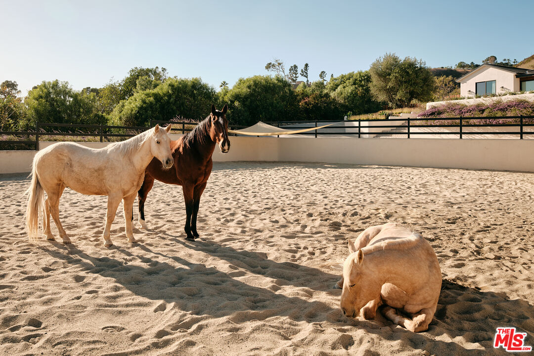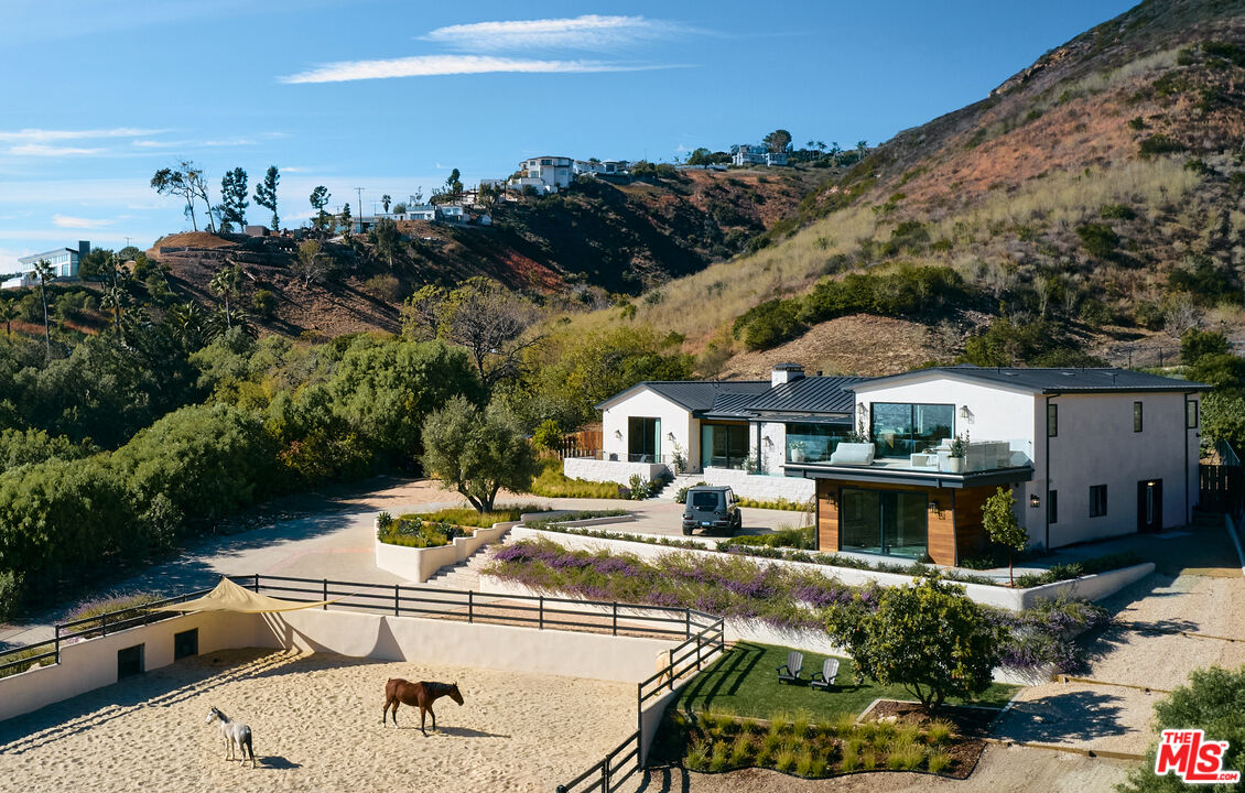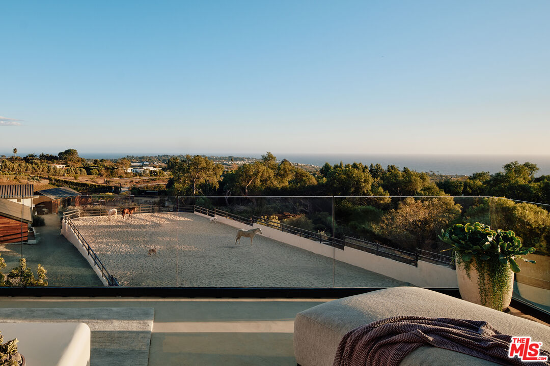 Nestled amidst rolling mountains and overlooking the vast Pacific Ocean, Aspen Hope Ranch stands as Malibu's premier equestrian estate. Thoughtfully designed with an organic modern aesthetic, this newly constructed architectural masterpiece seamlessly blends warm wood, natural stone, and expansive glass, harmonizing effortlessly with its breathtaking surroundings.The main residence is a sanctuary of light and space, featuring five bedrooms and six bathrooms. Its open-concept living areas exude understated elegance, perfectly suited for both intimate gatherings and sophisticated entertaining, all framed by panoramic ocean views. A grand central great room flows seamlessly into the outdoor living and dining areas, where a saltwater pool and spa, firepit, and pickleball court create an idyllic retreat.A separate guest residence, spanning approximately 2,200 square feet, offers a tranquil one-bedroom, two-bathroom havenideal for hosting extended stays in complete privacy.Situated on over two-and-a-half flat acres, the estate is a paradise for equestrian enthusiasts. Beyond picturesque olive groves and lush pastures, the property boasts impeccably designed stables, a fully equipped tack room, wash bay, and private office. At its heart lies a beautifully positioned riding arena, completing this unparalleled equestrian haven.Aspen Hope Ranch is where the serenity of nature meets refined luxury, offering an extraordinary lifestyle in one of Malibu's most coveted settings.Interested in this Listing?