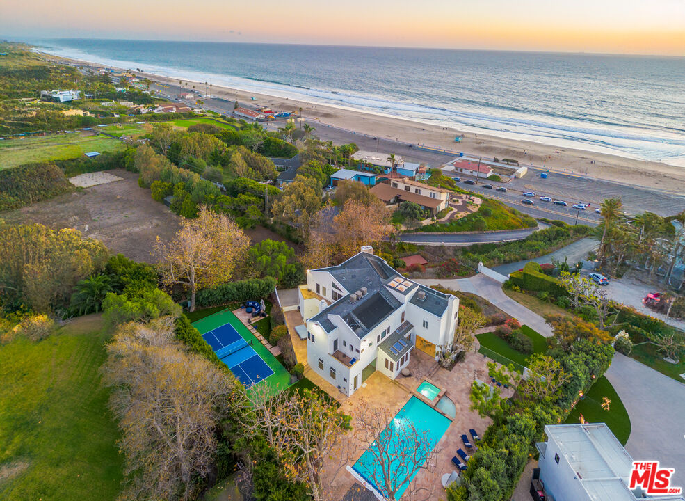 Ocean View home with new Pickleball Court and Pool directly above Zuma Beach with views from almost every room. This 5 bedrooms and 8 bathroom home features a formal living room with built-in sofas , a stand alone bar with seating and a formal dining room. There is also an open concept kitchen with informal dining and huge family room which make up the more informal part of the house. The lower level has a 3 car garage plus a bonus room. The main level has an additional guest suite plus all living spaces and the upper level has an additional 4 bedrooms plus an oversized Primary Suite with 2 terraces, his/ her bathrooms and an office area. The lush grounds include a 20x40 heated pool with spa, kids wading pool , a jacuzzi and a brand new Pickleball Court with seating areas for social gatherings .Additionally there is a pool house and an exterior bathroom. Most bedrooms have terraces and ocean views. The grounds are full of mexican sage and lovely flowers and trees, all very lush. This is an incredible home at Malibu's Famed Zuma Beach near the High School, Trancas Center and Point Dume shopping. Walk across the street to surf & sand! * Please note the home is on PCH but sits up and back above it so there is NO road noise here!Interested in this Listing?