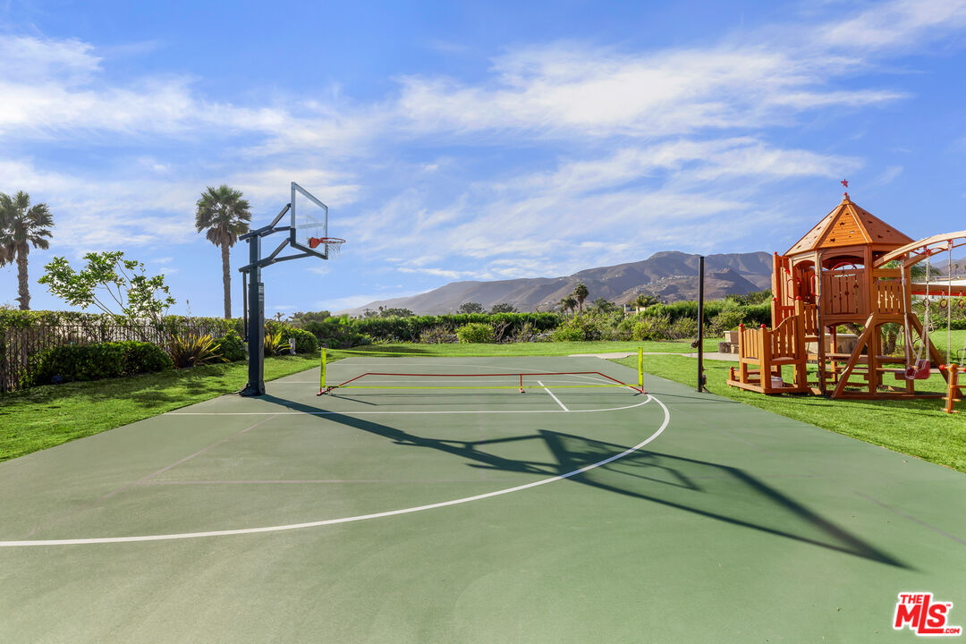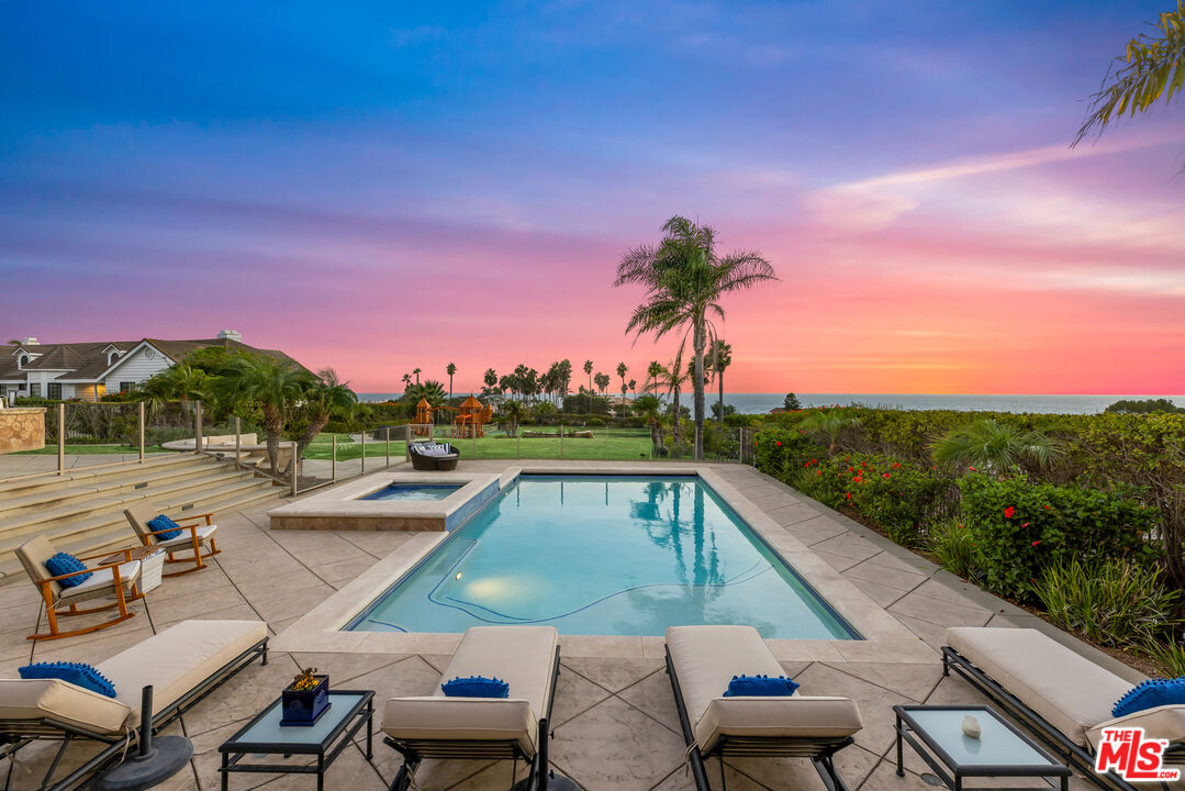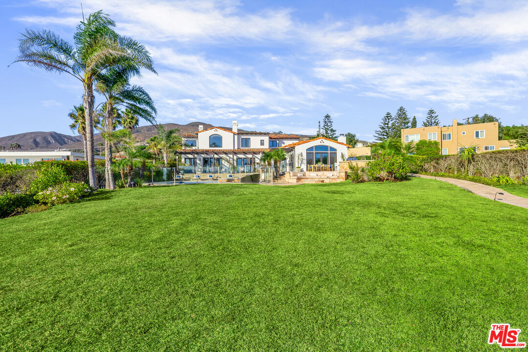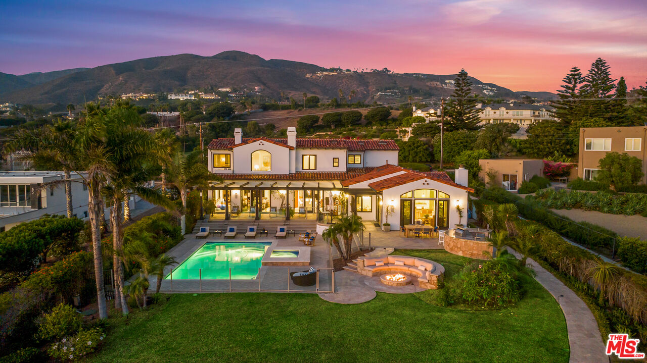 Experience unparalleled seaside luxury in this contemporary Mediterranean estate in one of Malibu's finest neighborhoods. Step inside to find panoramic ocean views and a custom home featuring crystal chandeliers, travertine flooring, and soaring ceilings. The open entertainer's kitchen is ideal for hosting, and features a seated island, top tier-appliances, and opens to the spacious backyard with ocean view. The oversized master suite includes dual walk-in closets, bath with soaking tub, steam shower, fireplace, and private ocean-view deck. 5 en-suite bedrooms provide plenty of privacy, while the media room and game room offer additional lifestyle options. Outside you'll find manicured grounds with pool and spa, sport court, fire pit and outdoor bar and BBQ area. Located just moments from the beach in your backyard, to world-class dining, and entertainment, this beautiful home is an ideal blend of modern luxury and coastal beauty.Interested in this Listing?