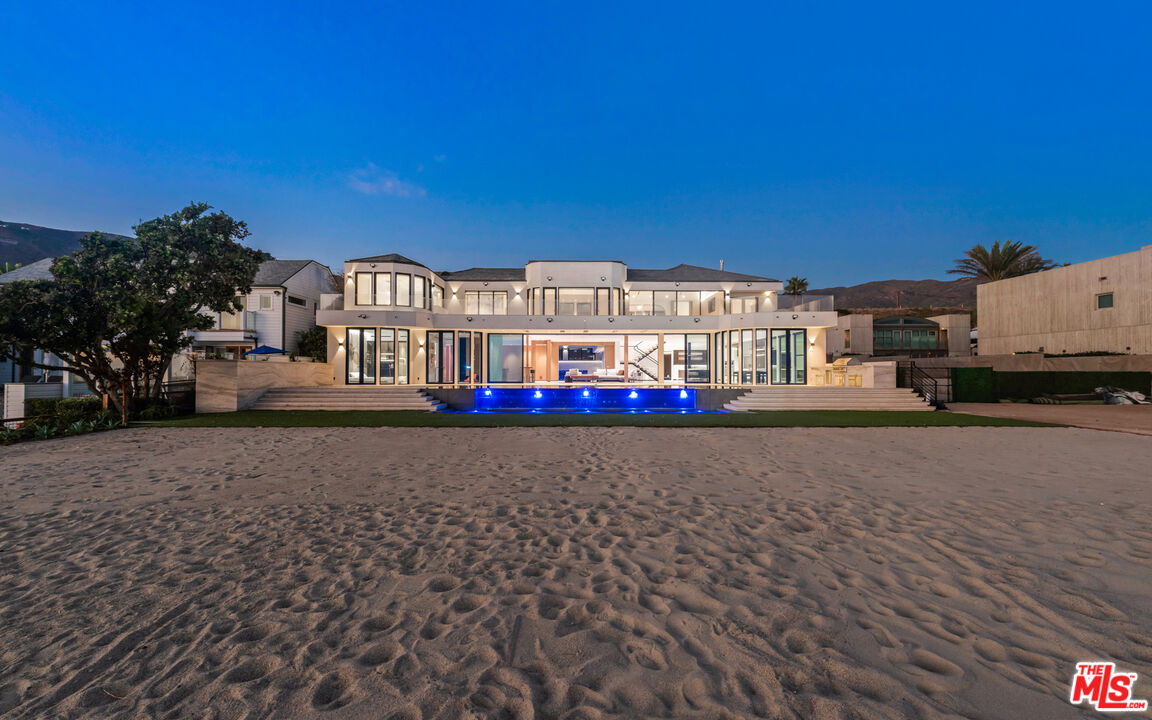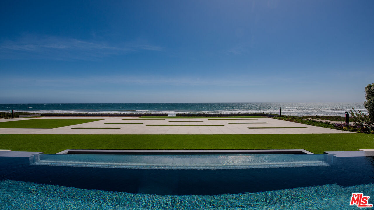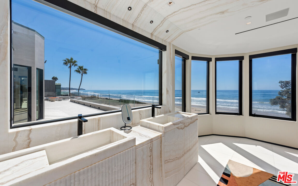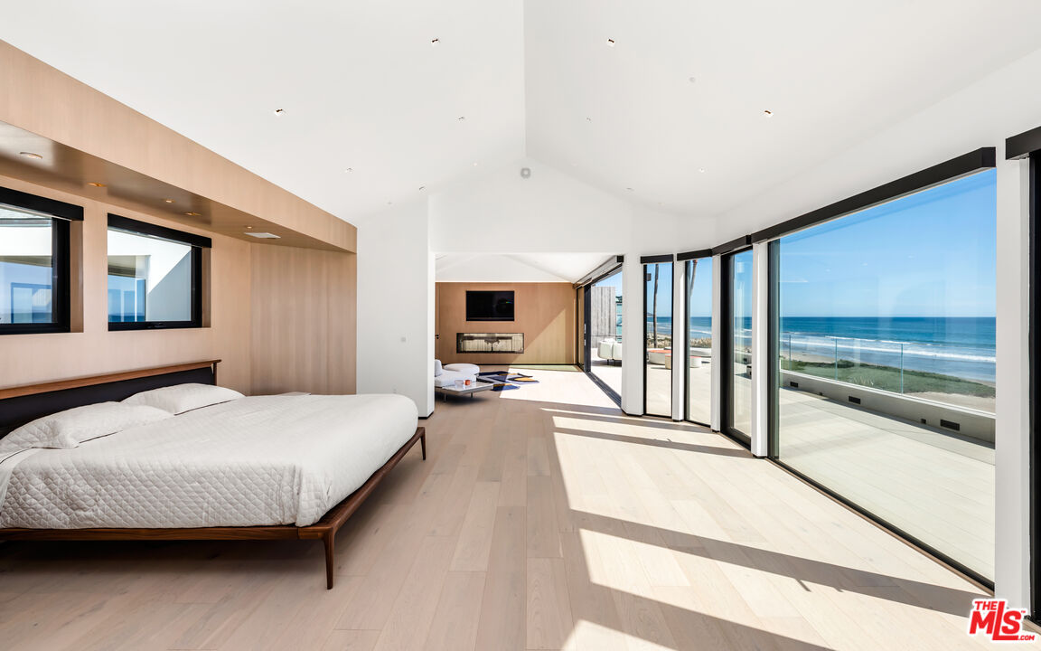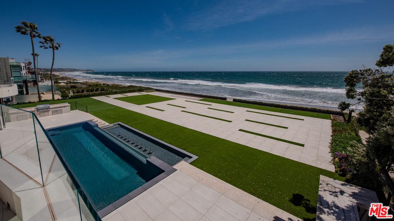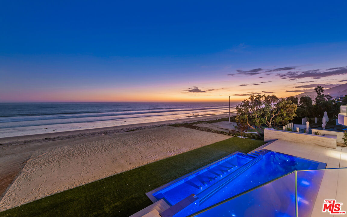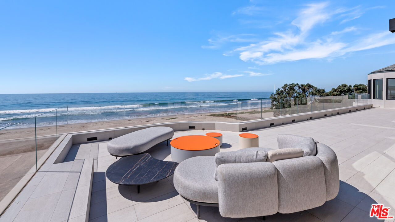 Welcome to your seaside paradise in Malibu! Nestled on nearly 3/4 acre of beachfront bliss, this exquisite property boasts an unparalleled location on Broad Beach. With over 7,600 square feet of luxurious living space, the estate comprises a Main House and a Guest House, ensuring opulence and comfort at every turn. The Guest House, a haven of sophistication, features 2 bedrooms, 2 bathrooms, a well-appointed kitchen area, family room, laundry room, and a security office with a separate bathroom. The main dwelling houses a total of 6 bedrooms, each equipped with ensuite bathrooms. The home's lower level is an entertainer's dream, with a family room featuring a bar, a spacious kitchen adorned with Gaggenau appliances, a dining room offering ocean-view seating, and a living area with a bar and wine closet. A Guest Suite, complete with a seating area, ensuite bathroom with a steam room, and direct access to the pool and beach areas, ensures a seamless blend of luxury and convenience. Upstairs, three secondary bedrooms with ensuite bathrooms, a den with a TV viewing area, and a main suite await. The expansive main suite encompasses a private office, sitting room, main bedroom, two walk-in closets, and a lavish main bathroom with a steam shower and soaking tub. A 1,000 sq ft balcony off the primary bedroom provides breathtaking 180-degree unobstructed ocean views. Completed in 2022, the residence is equipped with state-of-the-art electronics, security cameras, and alarm systems, all seamlessly controlled via a Control 4 app. The Family Room Theater features a 9'x18' video wall with full multiplexing, allowing simultaneous viewing of four events. Outdoor amenities include a zero-edge pool with swim jets, jacuzzi jets, and a water wall in the main courtyard. The beachside entertainment area boasts a built-in barbecue, a 40' infinity-edge pool with a Baja shelf, a dancing fountain, and over 6,000 sq ft of decking and entertainment space. Embrace coastal luxury and create everlasting memories in this Malibu masterpiece.Interested in this Listing?