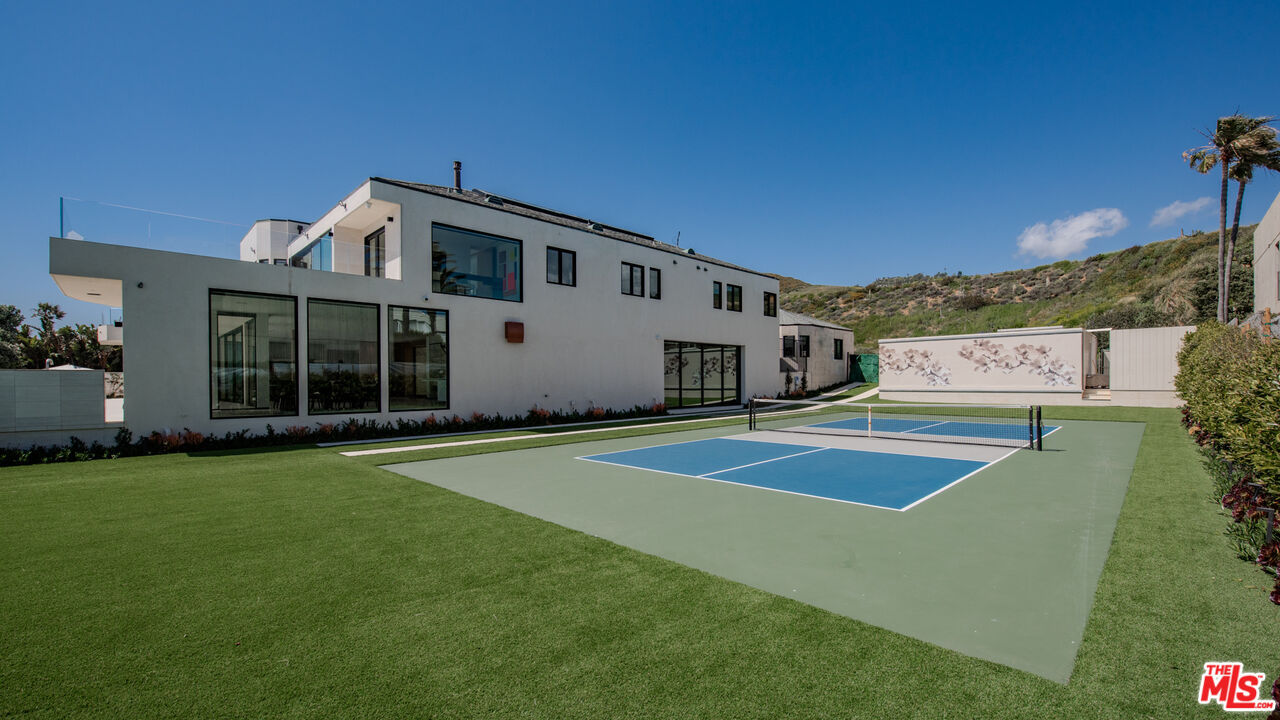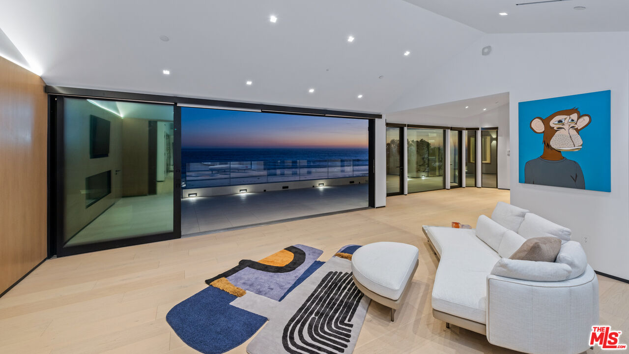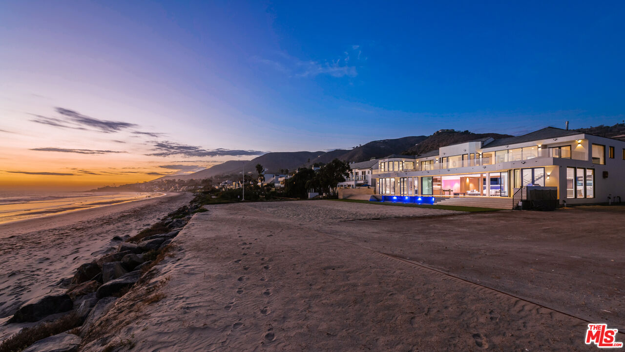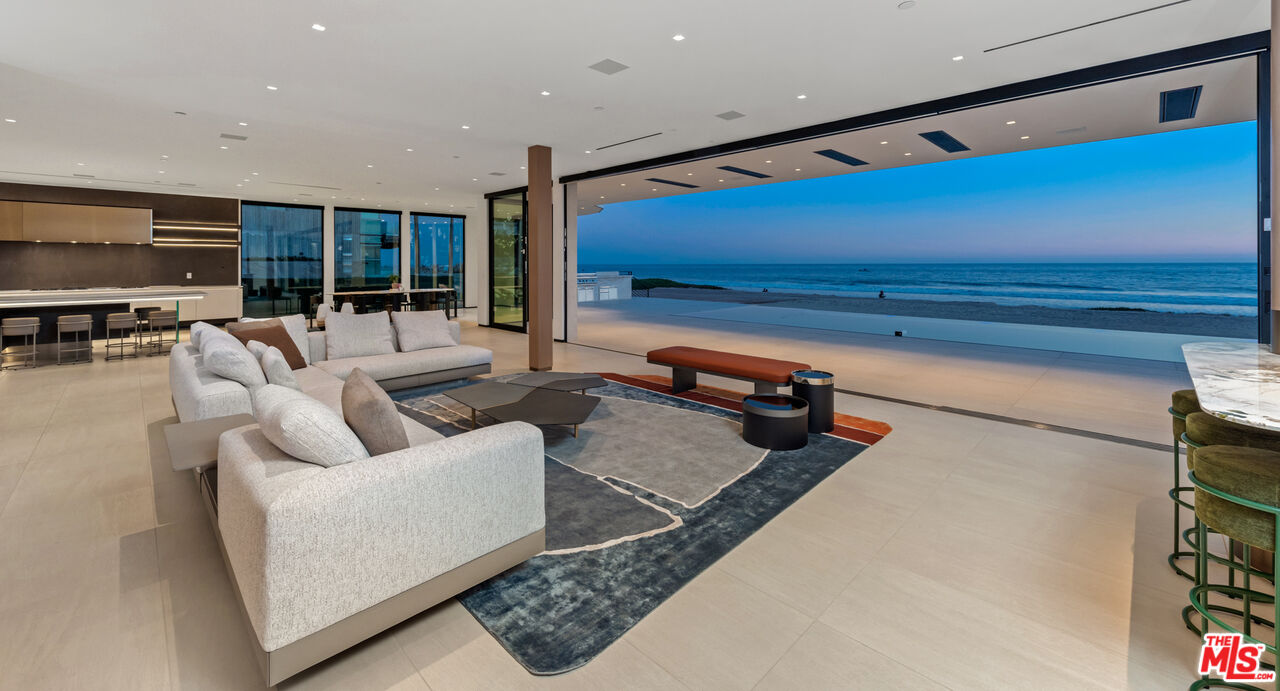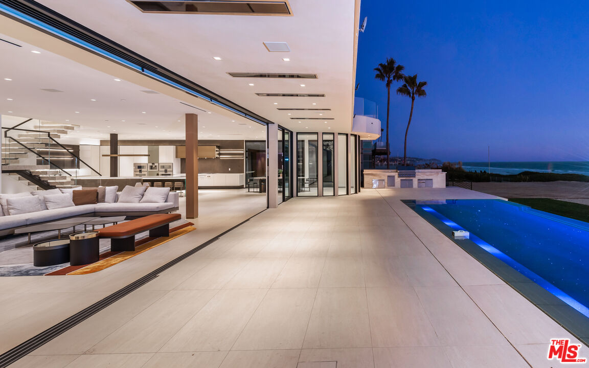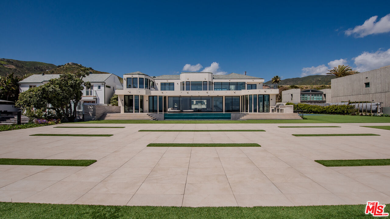 Welcome to your seaside paradise in Malibu! Nestled on nearly 3/4 acre of beachfront bliss, this exquisite property boasts an unparalleled location on Broad Beach. With over 7,600 square feet of luxurious living space, the estate comprises a Main House and a Guest House, ensuring opulence and comfort at every turn. The Guest House, a haven of sophistication, features 2 bedrooms, 2 bathrooms, a well-appointed kitchen area, family room, laundry room, and a security office with a separate bathroom. The main dwelling houses a total of 6 bedrooms, each equipped with ensuite bathrooms. The home's lower level is an entertainer's dream, with a family room featuring a bar, a spacious kitchen adorned with Gaggenau appliances, a dining room offering ocean-view seating, and a living area with a bar and wine closet. A Guest Suite, complete with a seating area, ensuite bathroom with a steam room, and direct access to the pool and beach areas, ensures a seamless blend of luxury and convenience. Upstairs, three secondary bedrooms with ensuite bathrooms, a den with a TV viewing area, and a main suite await. The expansive main suite encompasses a private office, sitting room, main bedroom, two walk-in closets, and a lavish main bathroom with a steam shower and soaking tub. A 1,000 sq ft balcony off the primary bedroom provides breathtaking 180-degree unobstructed ocean views. Completed in 2022, the residence is equipped with state-of-the-art electronics, security cameras, and alarm systems, all seamlessly controlled via a Control 4 app. The Family Room Theater features a 9'x18' video wall with full multiplexing, allowing simultaneous viewing of four events. Outdoor amenities include a zero-edge pool with swim jets, jacuzzi jets, and a water wall in the main courtyard. The beachside entertainment area boasts a built-in barbecue, a 40' infinity-edge pool with a Baja shelf, a dancing fountain, and over 6,000 sq ft of decking and entertainment space. Embrace coastal luxury and create everlasting memories in this Malibu masterpiece.Interested in this Listing?