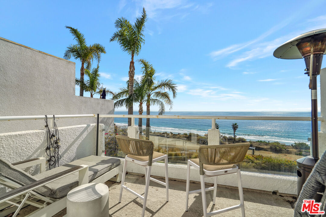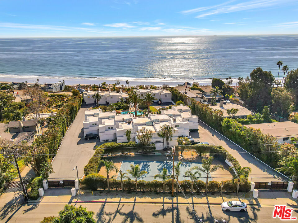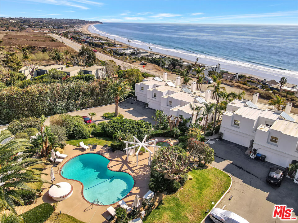 Views, views, views!! Malibu Colony West is a very unique intimate 14 unit condominium complex that sits on the bluff overlooking Broad Beach. It features a resort like setting with a tennis court, gorgeous sparkling pool, jacuzzi spa and beautiful grounds with mature trees and plants. Relax to the sound of the waves, enjoy the ocean views and technicolor sunrises and sunsets in this beautiful furnished home. This bluff side unit features hardwood floors, stone entry foyer and all renovated baths and kitchen and shows beautifully. This two story home is flooded with sunlight from multiple skylights. The foyer, main level kitchen, dining room and living room have an open concept floor plan that features a fireplace, high ceilings and sliding glass doors to a yard with stunning ocean views. Top floor master boasts a large walk in closet, another cozy fireplace, sliding glass doors to balcony with huge whitewater views and a beautiful bath with a tub facing the ocean. The very spacious secondary bedroom also has large walk in closet and terrace. Top floor also has a room that would be great as an office, arts room, playroom or even a spare sleeping area. This complex is gated and protected with security cameras. Very rare opportunity in a very special location.Interested in this Listing?