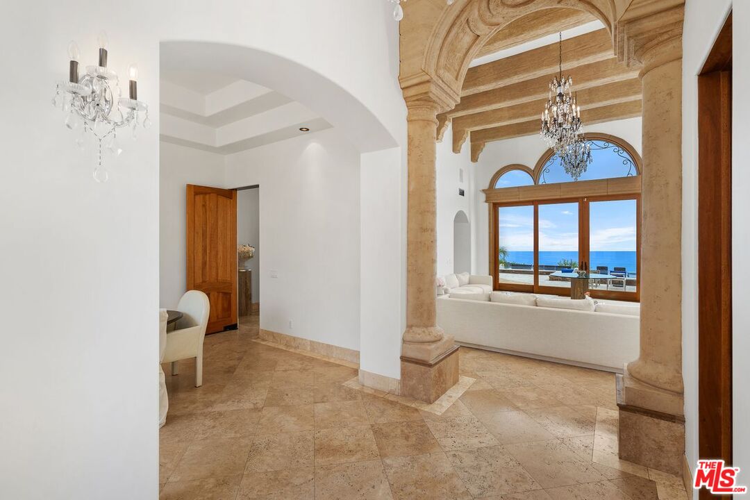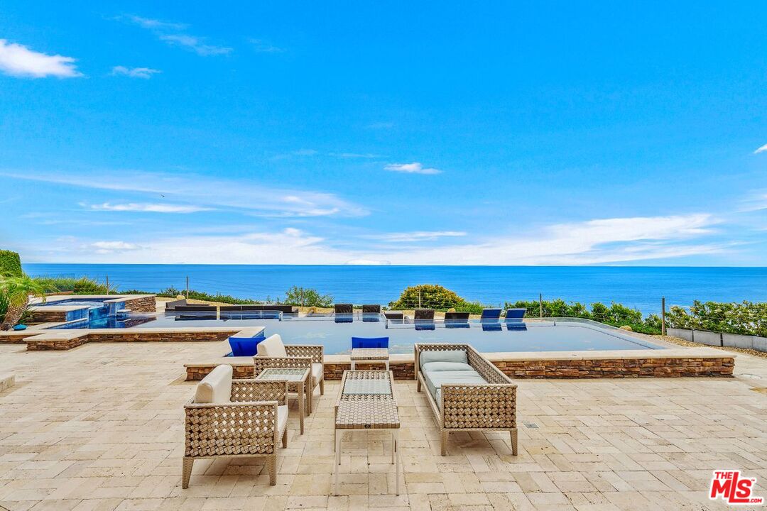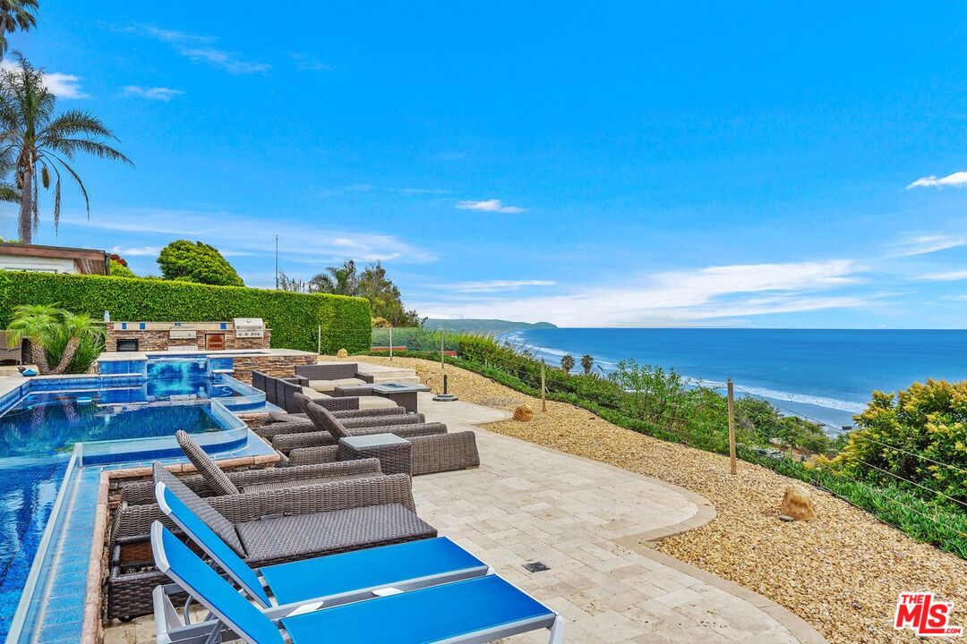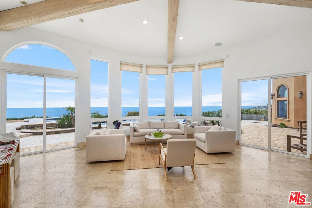 Fully furnished and move-in ready!! This Spanish architectural is located at the end of a private street on a bluff overlooking the iconic Broad Beach neighborhood. The compound features a gated driveway that is lined w/ beautiful mature landscaping & pavers that lead down to the primary residence w/ motor court, ample parking & breath-taking ocean views. The primary residence is a sprawling single story & features a formal dining room, voluminous living room w/ high ceilings, exposed wood beams, herringbone fireplace & sliding glass doors that lead out to an entertainer's paradise w/ an extensive wraparound patio, multiple lounge areas, infinity edge pool/spa & outdoor kitchen. Just off the main living room, the chef's kitchen features a bar & island w/ granite countertops, stainless steel appliances & custom cabinetry that flow into the second living area w/ direct patio access. The west wing of the property features an octagonal office w/ custom wood paneling, fireplace & ocean views overlooking the backyard area. There is also the primary suite that features a king size bed w/ custom oak headboard, fireplace, sitting area with west facing ocean views & private patio access.The property also features a 3-car garage and theatre. Located in west Malibu near world famous beaches, extensive hiking trails & the Trancas Country Mart, which has some of the best restaurants, shops & entertainment options in town.Interested in this Listing?