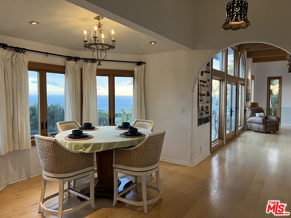 Enjoy privacy in this elegant gated ocean view Mediterranean retreat in Malibu's Broad Beach community , just steps from the beach. The center courtyard is surrounded by lush landscaping with a flowing fountain, jacuzzi and good old fashioned porch swing . Breathtaking ocean view in most rooms make for a beachy feel. The master suite leads to the newly remodeled spa bathroom with claw-foot tub and steam shower.The master also has a lovely sitting area with ocean views. 2 Additional bedrooms and a shared bath complete the. sleeping level. The designer kitchen with pendant lighting is chic and functional with 2 prep islands and an informal dining area as well as formal dining room. A spacious family room/ den with a sleeper sofa, can be used as the 4th bedroom. The attached gym opens to the courtyard with the view of garden. Walking distance to the Vintage shoppoing center , as well as 4 beach entrances on Broad Beach.Interested in this Listing?