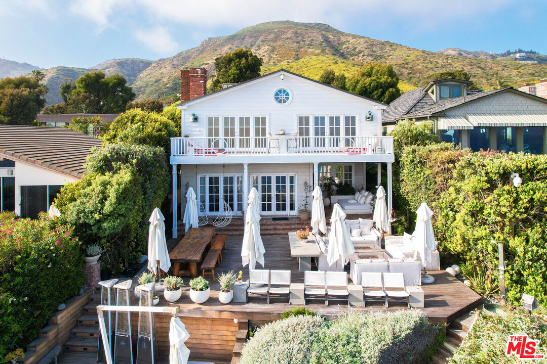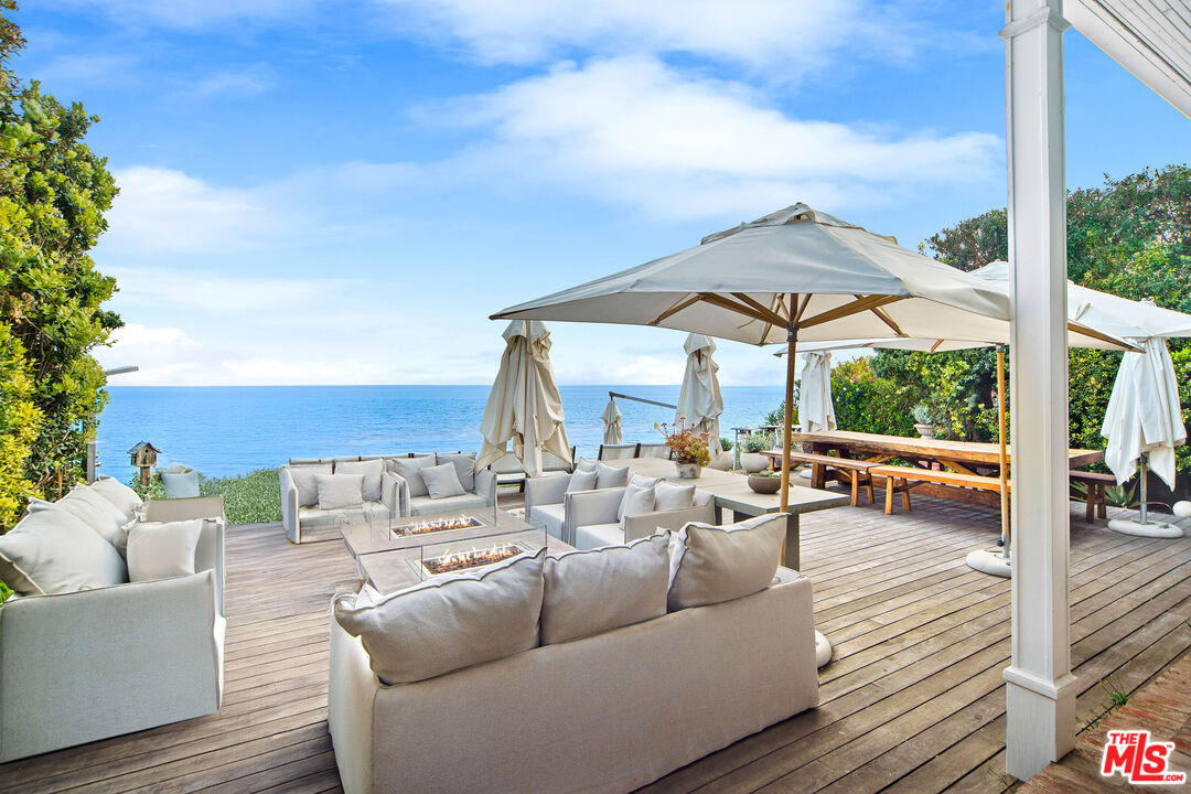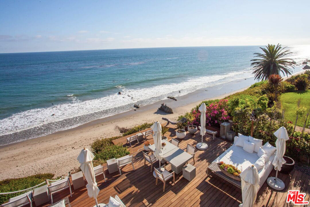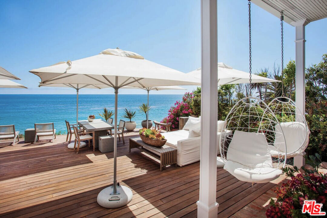 A unique opportunity to lease and experience the pinnacle of Malibu living in this stunning bluff-top estate on coveted upper Broad Beach Road. Once home to legendary musician Sammy Hagar, this professionally designed West Indies-inspired Cape Cod residence offers unparalleled privacy, panoramic 180-degree ocean views, and exclusive private access through a naturally landscaped Seafield to a pristine, wide sandy beach. Spanning approximately 4,779 square feet, this six-bedroom, five-bathroom retreat is thoughtfully designed for comfort, entertaining, and inspiration. The sunken living room features soaring beamed ceilings, a grand fireplace, and a full bar, all complemented by teak wood floors throughout. Double French doors open onto an expansive oceanfront deck with multiple lounge and dining areas, two fire pits, and a spa deck overlooking the Pacific. The gourmet kitchen, complete with a charming breakfast nook, flows seamlessly into an adjacent formal dining room. The primary suite is a 5-star retreat boasting a private sun deck, vaulted beamed ceilings, a wood-burning fireplace, a steam shower with a built-in TV, and a spacious sauna. Additional accommodations include an elegant junior suite with padded walls, three guest bedrooms (one converted into a custom walk-in closet), and a cozy den/office. Set on approximately 1/3 acre of lushly landscaped grounds featuring native plants, grasses, and wildflowers, this gated estate provides both serenity and security. Located just 1.5 miles from Trancas Country Mart, this bluff-top haven captures the essence of coastal luxury living.Interested in this Listing?
