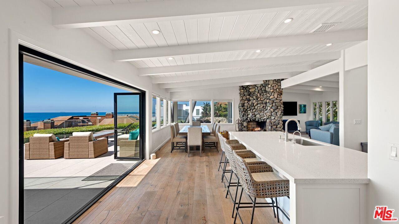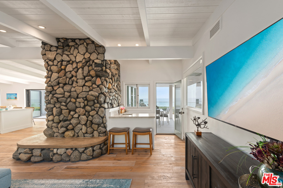 This remarkable Mediterranean contemporary combines all the best elements of Malibu living: exquisite location, private beach access, two master suites, a guest house, and non-stop ocean views. Located in a gated community on a large, corner cul-de-sac lot, the home is luminous and peaceful, with French oak floors throughout and a wonderful open-concept design for relaxed indoor-outdoor living and impressive entertaining. Enormous windows and fold-away glass doors frame views of gardens, courtyard, patio, and a panorama that takes in Catalina, Channel Islands, Point Dume, coastline, and whitewater. The main living area, with a wet bar, built-in bench seating, and flat-screen faces onto the front courtyard and shares a dramatic river-rock wall with the dining room, where the rock wall becomes a fireplace. The chef's kitchen has Caesarstone countertops, a breakfast bar, and a large pantry. Just outside is a huge ocean-view patio for entertaining, covered and al fresco dining, and relaxation. At the far end of this patio is a hot tub set in a quiet garden. Additional outdoor areas include a firepit and river-rock-backed bench, a barbecue island, and a second hot tub in the ocean-view front yard. From the home's main entry, steps lead to the first of two owner's suites. With beamed ceilings, a sitting area, a custom closet, and a luxurious bath, this magnificent room opens onto a huge, private wraparound deck with amazing panoramic ocean and whitewater views. A second owner's suite is on the main level with two walls of windows looking out onto the patio, hot tub, and ocean views. Down a small hallway with generous built-ins is a family room with a flat-screen TV and French doors to the front courtyard, plus a third bedroom with twin beds, a flat-screen, writing area, a closet with stacked washer/dryer, and French doors to a side patio. Off the front courtyard is a guest house with a full kitchen, small dining area, ocean-view living room with high wood-beamed ceilings, private ocean-view deck, and an en-suite bedroom that also has access to the deck. The home is equipped with a Nest system and has a two-car garage with guest parking. A truly wonderful Malibu residence. July and August rate is $40,000 per month, Security Deposit is $40,000.