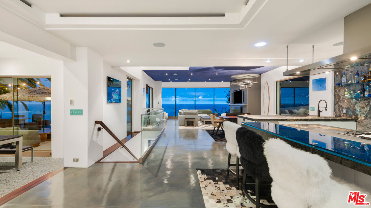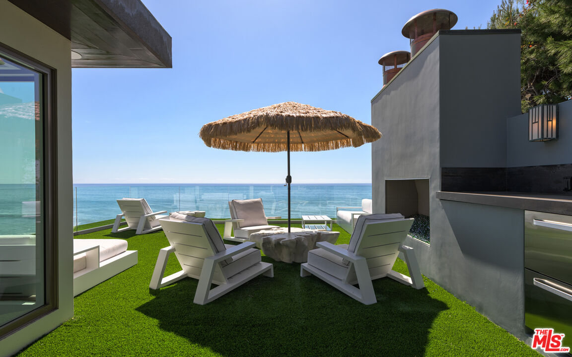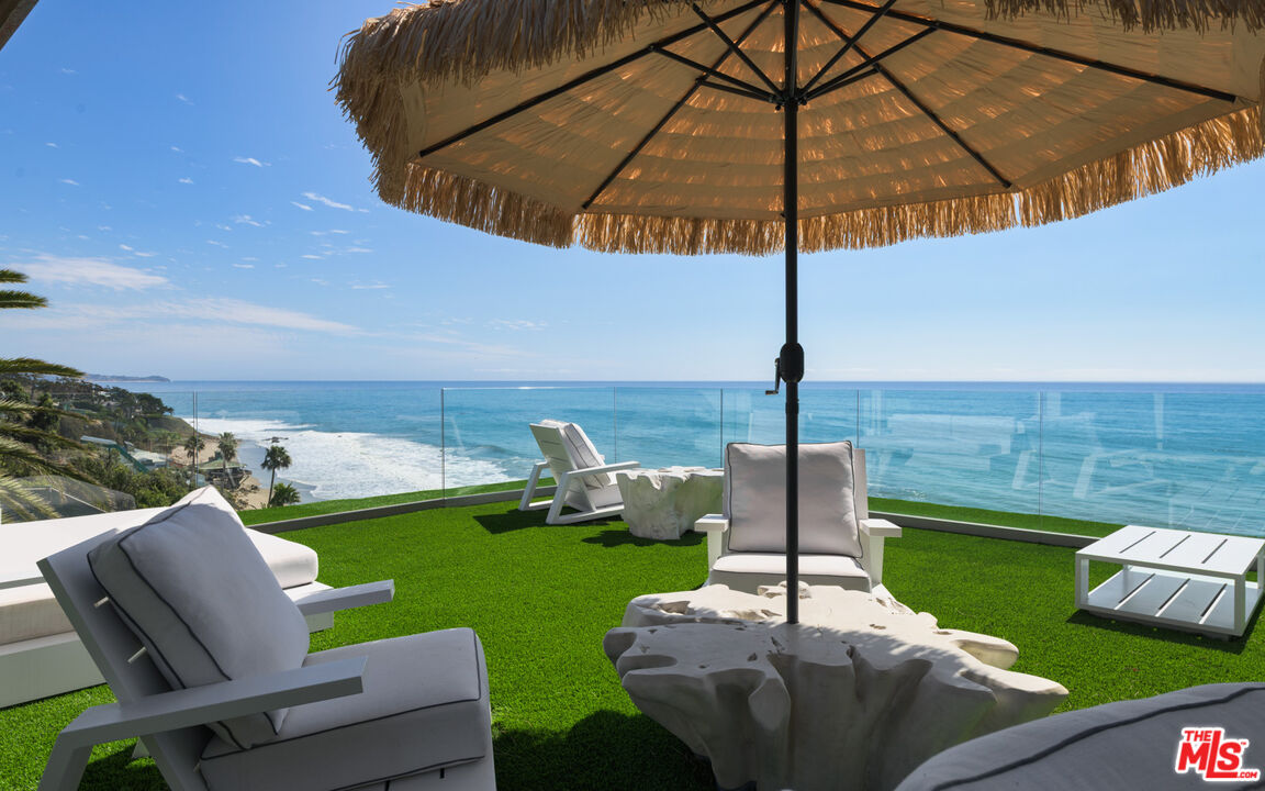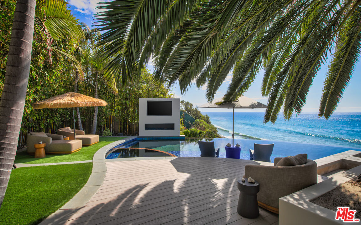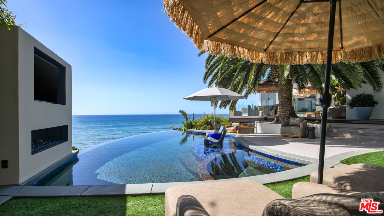 Perched on one of Malibu's most coveted private beaches, this tri-level architectural masterpiece epitomizes modern coastal luxury. Designed with impeccable craftsmanship and cutting-edge technology, this four-bedroom, four-bath Crestron-integrated smart home seamlessly merges indoor and outdoor living.Expansive floor-to-ceiling glass walls frame breathtaking 180-degree views of the Pacific, flooding the interiors with natural light and leading to a wraparound deck where waves crash just beyond. The sleek open-concept living and dining areas, anchored by a striking fireplace, flow effortlessly into a state-of-the-art gourmet kitchen outfitted with top-tier Gaggenau and Sub-Zero appliances. The opulent owner's suite is a sanctuary of tranquility, boasting uninterrupted ocean vistas, a private terrace, and a spa-inspired bath designed for ultimate relaxation. Three additional en-suite bedrooms provide luxurious accommodations, with one transformed into a high-tech media lounge for an immersive entertainment experience.Step outside to a stunning saltwater infinity pool that seemingly spills into the horizon, or retreat to the rooftop deckan entertainer's dream featuring a built-in BBQ, an elegant outdoor fireplace, and plush lounge seating, all set against the backdrop of Malibu's golden sunsets. A true coastal sanctuary, this home is an unparalleled fusion of architectural brilliance and beachfront serenityan absolute must-see.Interested in this Listing?