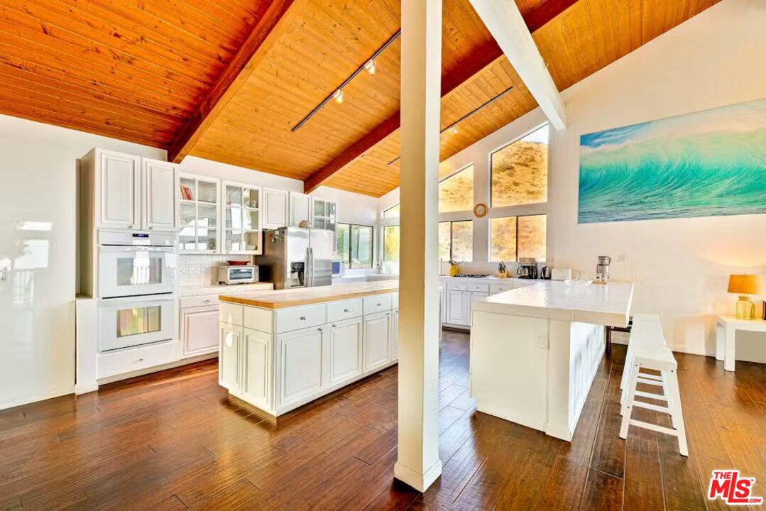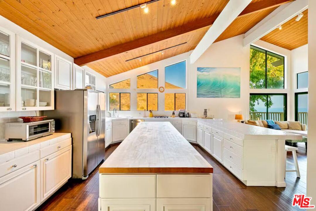 Beautiful turnkey, furnished home, with swimming pool and sweeping ocean and coast line views. Great location in serene western Malibu - just minutes from scenic beaches, top rated schools and the gourmet Vintage Market. The heart of the home is an expansive open great room with high vaulted ceilings and wood flooring that seamlessly blends the living room, gourmet kitchen, and family room. The dining and living spaces are ideal for both entertaining and relaxing, with oversized windows and sliding glass doors that lead out to expansive balconies. The spacious primary suite has a fireplace, sitting area, two walk-ins and a spa like bathroom with a sauna. There are three additional bedrooms offering ample space for family and friends. Outside, the heated swimming pool and spa are surrounded by nature and nearby park land and offer up stunning ocean views. The property also includes a laundry room, three car garage, and elevator. It's a fantastic place to live and enjoy the Malibu lifestyle. Additional discount for leases longer than one year.Interested in this Listing?
