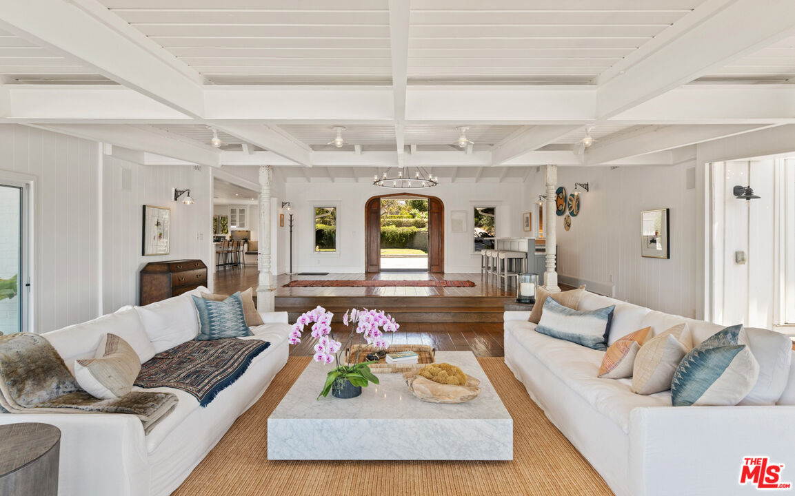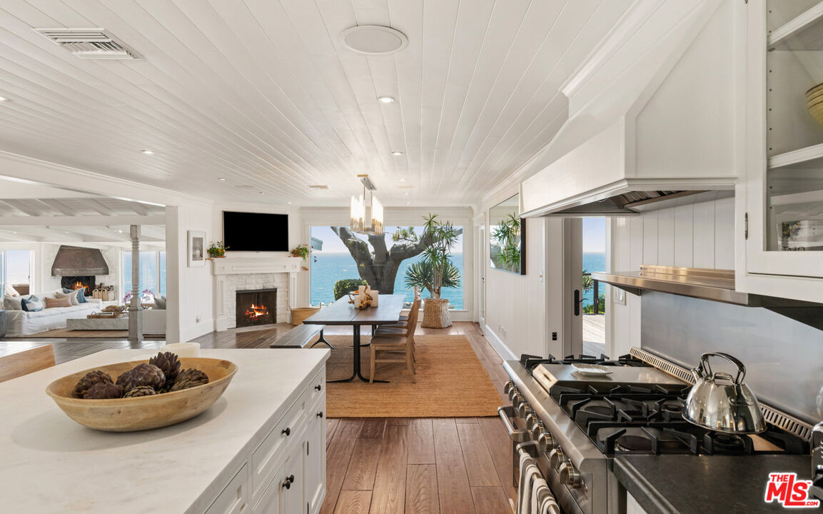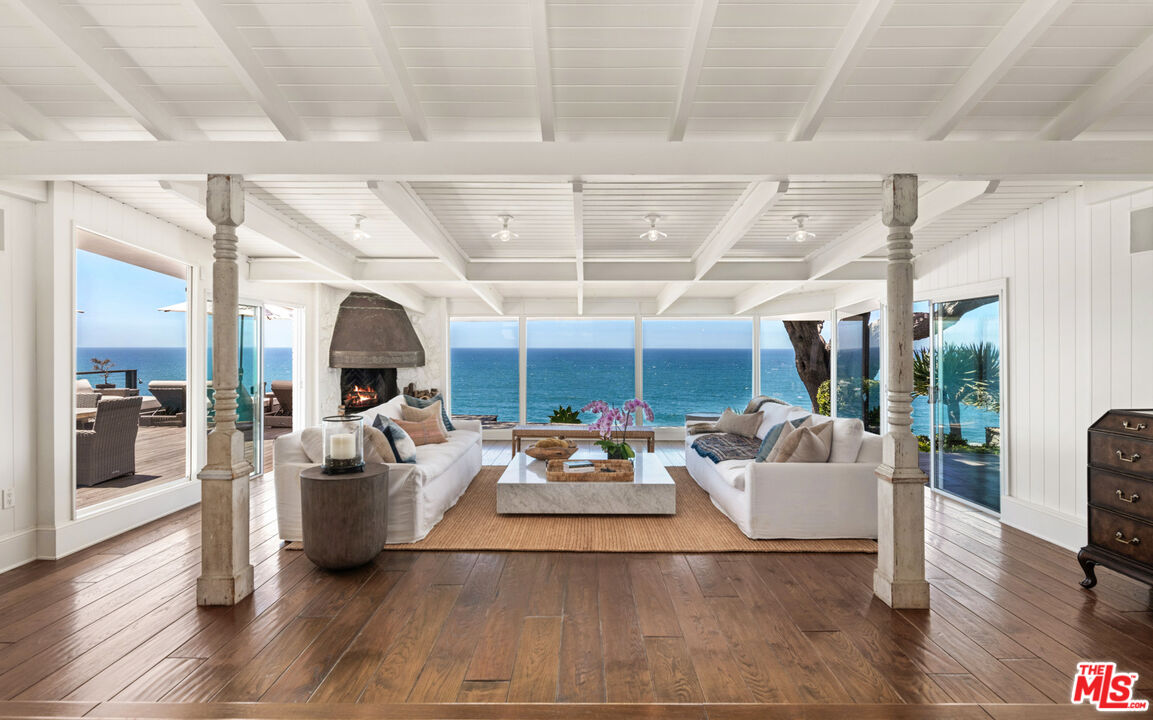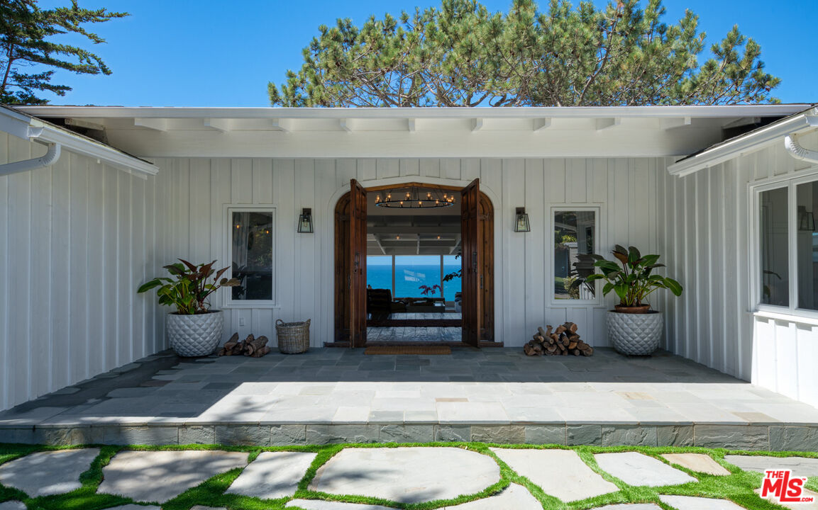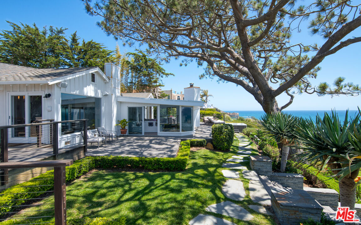 Perfectly situated on a bluff above Westward Beach, this resort-like, single-level residence is surrounded by gorgeous landscaping and sensational coastline and ocean views. Over an acre of manicured lawns and gardens offers an idyllic setting for sparkling daytime and starlight entertaining, while the spacious, open interior invites harmonious gatherings large and small. Wraparound decks, multiple patios, steps to the sand, and immaculate, comfortable decor make every part of the property a tempting spot to relax. Gated and very private, the residence is set well back from the road, with a long drive, huge front lawns, generous guest parking, and an enormous sunken firepit and patio surrounded by fruit trees. The double front doors open to display dramatic sight lines direct to the ocean. The interior is serene and bright, with wood plank ceilings and floors, wraparound windows, and congenial indoor-outdoor flow. A spacious foyer with a bar steps down to the living room, which has a lovely corner fireplace, floor-to-ceiling windows on three sides, and an ocean-view deck. A wide doorway leads to the dining area, which also has a corner fireplace, majestic ocean views, and a deck just outside. The large space is shared by the kitchen, complete with island, bar seating, top-quality appliances, pantry cabinets, and a reading nook. Adjacent to the kitchen/dining room is a family room, which opens to an office space with a powder room and a walk-in closet. There is also a media/recreation/family room with high truss ceilings, wet bar, storage cabinets, and another powder room. Off the foyer, a hallway leads to two bedrooms, while the primary suite is entirely detached from the main house. A private retreat with the feeling of a resort bungalow, one end of the suite has accordion glass doors that open fully to the view and a private deck, while a set of sliding glass doors open onto another deck. In addition to a walk-in closet, the suite has a spa-like bathroom with a small private patio. An ocean-view deck wraps around the back of the house, with areas lighted and furnished for al fresco dining, lounging, and entertaining. There is a Viking barbecue, a deck-front Jacuzzi, a large Buddha fountain, and steps to a lower terrace with a lawn and seating for dolphin-watching and star-gazing. A private stairway leads down to Westward Beach. The home is equipped with security and ample storage, including a one-car garage or golf cart space. With the atmosphere of an island resort and the conveniences of nearby Point Dume, this is a truly stunning refuge in a remarkable setting.Interested in this Listing?