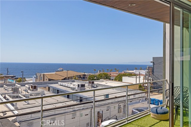 Experience the pinnacle of beachside living in this stunning modern home, offering breathtaking panoramic ocean views from Palos Verdes to Malibu. Nestled in the heart of Manhattan Beach s coveted sand section, on a southwest-facing corner lot, this home is just steps from downtown, where world-class dining, boutique shopping, the iconic Manhattan Beach Pier, and top-rated schools await. Designed by James Meyer and published in multiple architecture magazines, this residence showcases a seamless blend of wood, steel, and stone, creating a sophisticated yet inviting atmosphere. Natural light pours into every space, enhancing the open and airy feel. The first-floor bedroom and bath provide flexibility for a guest suite, home office, or gym. On the second floor, the primary suite offers a serene retreat with an en-suite bath featuring a shower and a jetted tub, alongside an additional bedroom with its own private bath. The top level is the heart of the home, where floor-to-ceiling sliding glass doors span 36 feet along the entire western side of the house, framing expansive ocean views and opening onto the balcony. With high ceilings, an open-concept living area, a fireplace, and seamless indoor-outdoor flow, this space has a timeless design for both relaxation and entertaining. Open both balconies to let in the fresh ocean breeze and soak up the sun. Designed with sustainability in mind, this home features solar-powered hot water and electrical systems, significantly reducing operational costs. Built for efficiency and ecologically sound living, it also includes EV charger capability, making it an ideal choice for modern, eco-conscious lifestyles. This is a rare opportunity to own a slice of coastal paradise in one of Manhattan Beach s most sought-after locations, where breathtaking views and an unbeatable location come together for the ultimate coastal lifestyle.Interested in this Listing?
