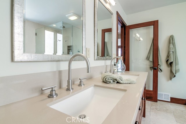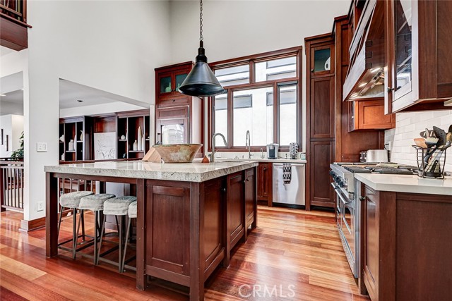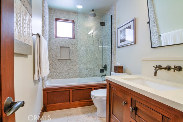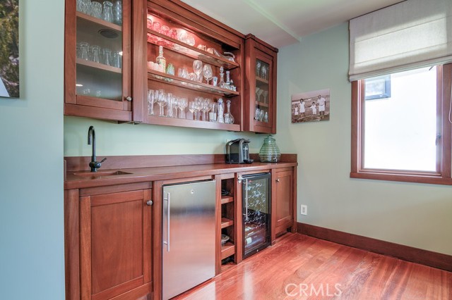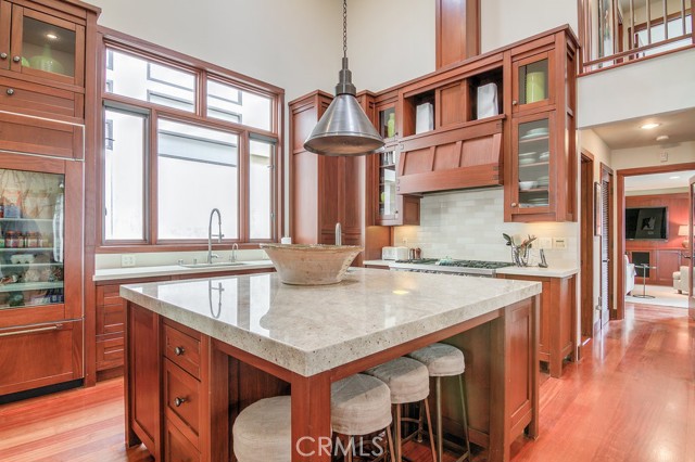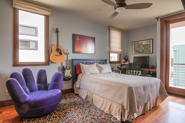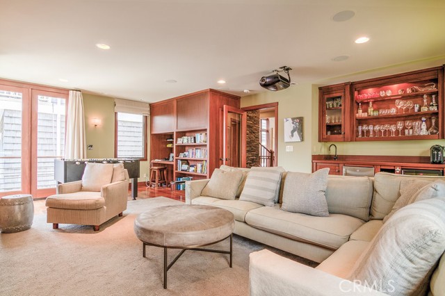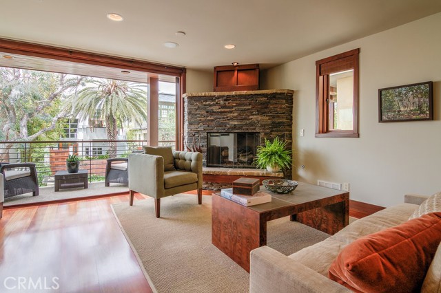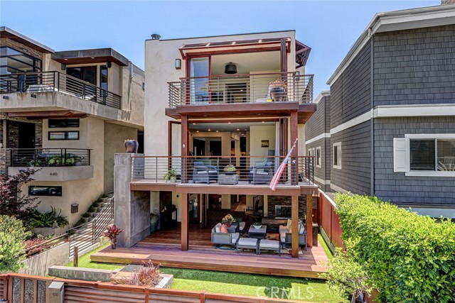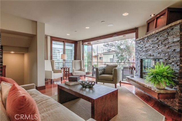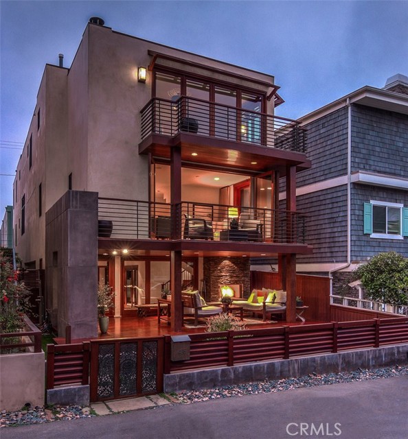 Clean lines and Minimalist Interiors personify this KAA designed home in the prestigious Sand Section of Manhattan Beach. Indoor/Outdoor living is ingeniously woven into the design; La Cantina doors placed on every level invite you outside for morning coffee, drinks, meals or just basking in the sun. There is a spacious entry level deck and lawn replete with a fireplace perfect for impromptu gatherings with friends. Open the La Cantina doors and enter a foyer which leads to a den (with a private patio), an ensuite bedroom (perfect for guests), and a separate laundry room. The second level houses a formal living room with stone fireplace and balcony, kitchen (featuring a soaring ceiling open to the third floor), Media room with a beautiful built- in bar and desk area) and a full bath. Upstairs, you'll find the primary suite with a Ocean View balcony, an office (overlooking the second level) and two additional bedrooms and full bath. A beautiful blend of woods throughout-(African Mahogany, Brazilian Cherry and Mangaris) provide a warm natural atmosphere. Take a look at the floor plan in photos- this home is perfect for entertaining!Interested in this Listing?