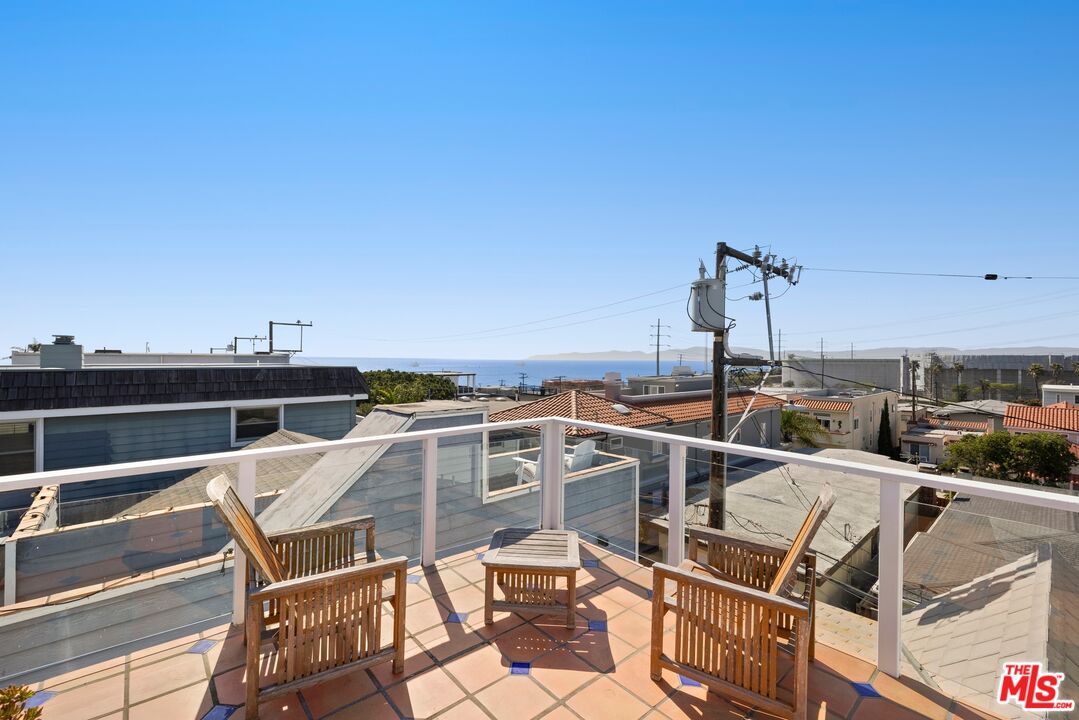 Experience sweeping ocean, mountain, and treetop views from this New England Coastal-style home with a 360-degree rooftop deck, a rarity for the neighborhood, and a seemingly endless floor plan with a variety of living spaces and terraces. Calming aromas of the Pacific waft through the air, setting the scene for the quintessential seaside lifestyle that awaits. Inside, a formal living room has a bay window, fireplace, and French doors to the front brick-lined courtyard. The family/media room has open shelving and an adjacent balcony overlooking the grounds below. Nearby, the updated kitchen features warm woods, stainless-steel appliances including a Viking cooktop, an abundance of cabinetry, breakfast bar, hot spot, and dining areas aside an additional patio with gas barbecue, perfect for entertaining and dining al-fresco. There is also a clever temperature-controlled wine closet, positioned to maximize use of space. The primary bedroom is spacious, and its en-suite bathroom includes a dual-sink vanity, jetted tub, separate steam shower, and door to a private viewing terrace. Access the rooftop deck via a bonus room/office with built-ins, perfect for work, study, or play. Secondary bedrooms and bathrooms are light-filled and echo coastal vibes. For rinsing off after sunny beach days, there is also a convenient outdoor shower. Enjoy this prime location near dog-friendly parks, beaches, schools, local cafes, and beloved eateries, all just moments to freeways, LAX, and the very best of the South Bay. The Westside is also just a short 20-minute drive away. Welcome!Interested in this Listing?
