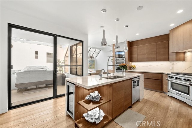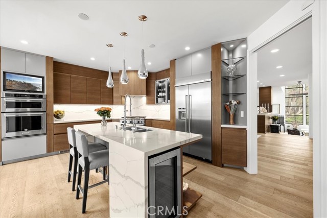 Stunning one-of-a-kind Silver Strand residence where luxury and serenity blends elegance, sophistication and harmony. Nestled in the prestigious and exclusive Silver Strand neighborhood, this custom built home was designed by renowned architect Marshall Lewis. Located on a landscaped mall/walk street that has 24/7 security patrol, this home offers a blend of peaceful living and the vibrant conveniences of the Marina and Westside. Rare offering of a 3 bedroom, 4 1/2 bath, 3579 sq. ft. home with 26 ft. high ceilings in the living room and a 4-stop convenience elevator. Primarily steel, concrete and glass construction makes this home unique and unparalleled. Tremendous use of natural light, spacious room size, windows, high ceilings and outdoor space contribute to the ambiance. Meticulously remodeled in 2018 the chef's kitchen features custom German cabinetry, quartz counter tops, and high-end stainless appliances. Also, 6 burner gas cooktop, 2 electric ovens, microwave and instant hot water system. Formal dining, balcony dining, bkfst. nook and center isle dining offers options for entertaining. Primary suite features private balcony, walk in closet, sitting area, bio-fuel fireplace and spa-like his and hers bathrooms. Freestanding tub, heated floors, sky-light, electric mirrors and abundant use of Carrera marble make this retreat an absolute dream. Abundant outdoor space includes private balconies off each bedroom, a putting green and a two-tier roof top deck with hot tub and ocean, city and mountain views. Downstairs features a 400 sq. ft. + Media/Theatre room w/ a 212 " screen and 4K projector and surround sound. Smart home technology w/ Lutron lighting & Savant Entertainment controls. Too many amenities and this is a MUST SEE!Interested in this Listing?