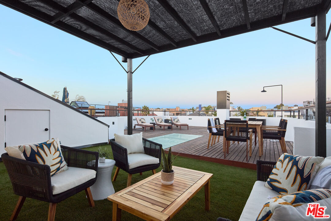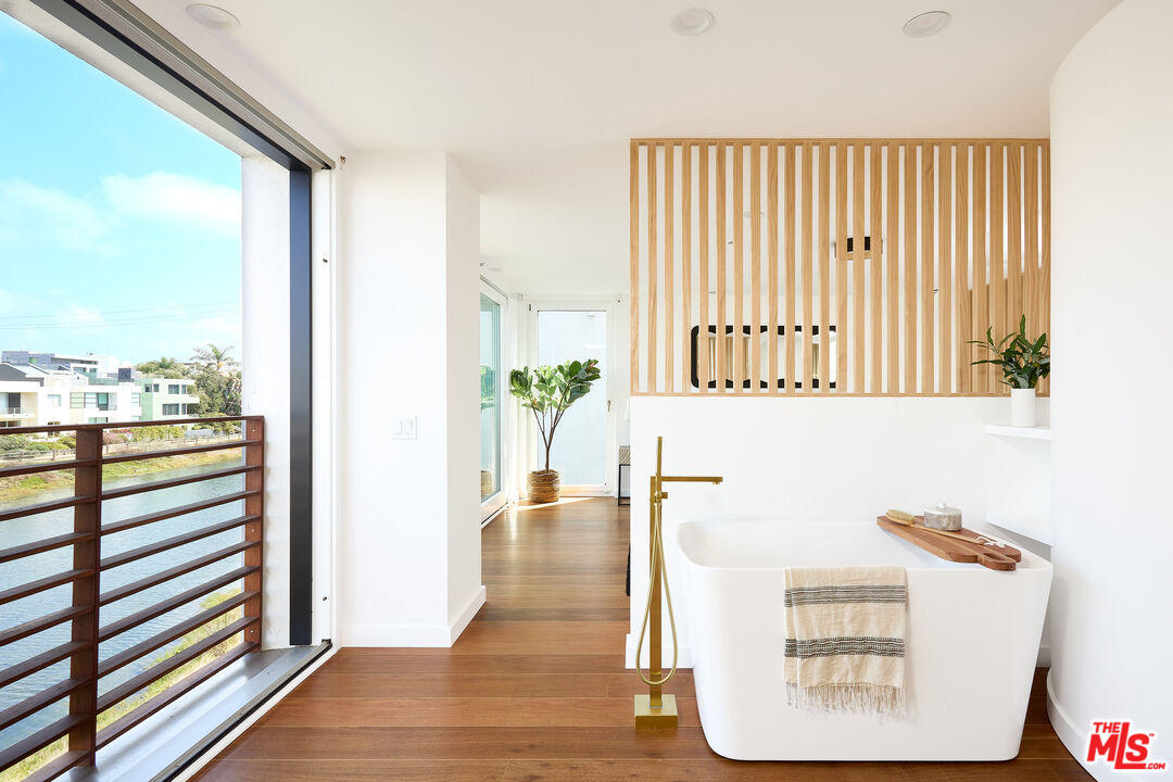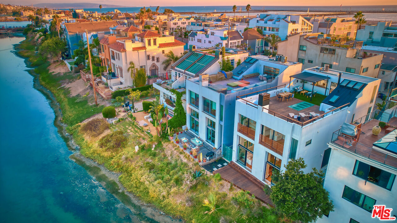 Stunning architectural home on the canal in Marina Peninsula with even more updates as of June 2025. Experience luxury living on the peaceful end of Grand Canal, steps from one of the most private beaches in Los Angeles. Featuring 5 spacious bedrooms, 5 full baths, and 1 half bath, this exceptional pride-of-ownership home is perfect for laid-back SoCal living. Step out onto your private deck for a quick kayak or SUP ride, walk one minute to the beach, or take a morning walk along the beautifully manicured path around lagoon. Imagine entertaining your guests at the dedicated living room bar with the fireplace roaring, flanked by floor-to-ceiling windows, showcasing the gorgeous Grand Canal. Take in breathtaking views on the expansive roof top deck, complete with a spa, outdoor shower, and a sunken living room with a pass-through window for serving guests, or enjoy a movie or gaming in the theater room. This four-story home has something for everyone and even has a three-car garage. Don't miss out on this waterfront gem!Interested in this Listing?