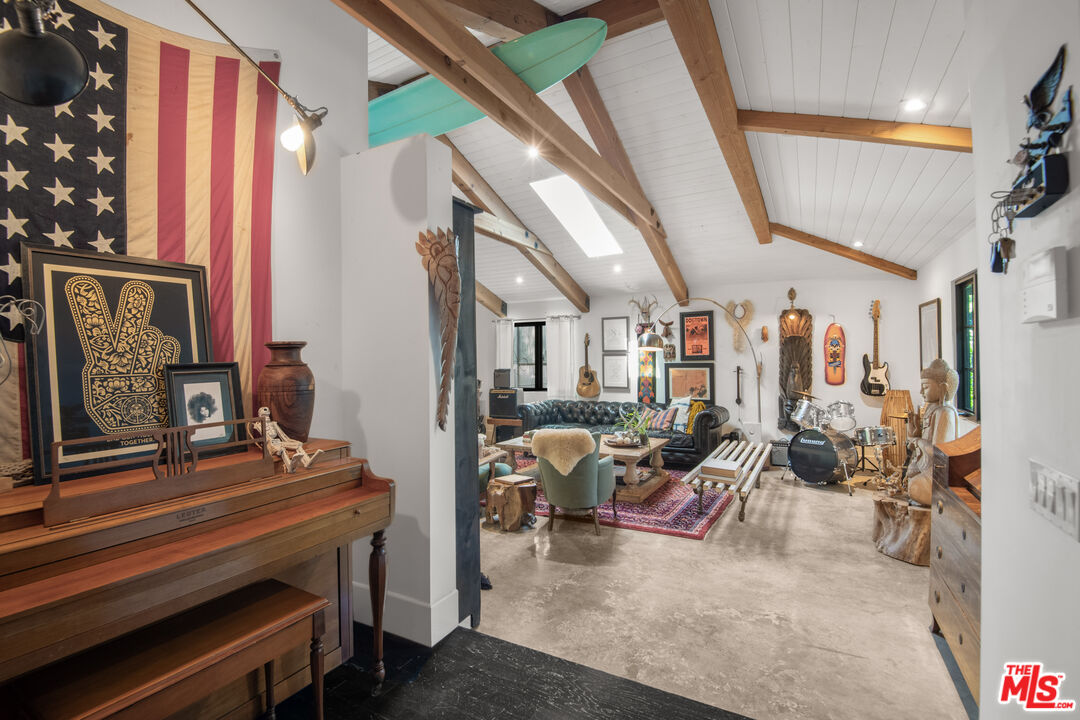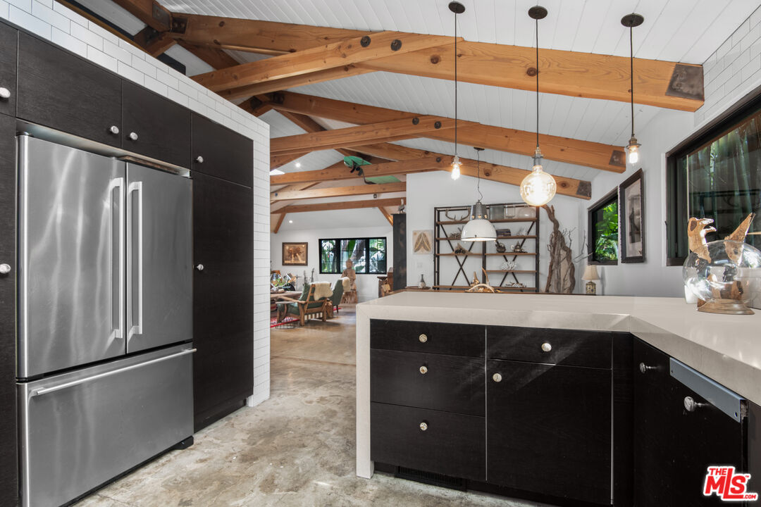 823 is a creative oasis in Venice's coveted Golden Triangle. It's conveniently located close to Venice Pier, the Marina, Abbot Kinney, and many of LA's best restaurants and culture. Upon arrival, you'll be greeted by its impressive gates which warmly welcome you to its Balinese-inspired front gardens. The tri-level home has been completely remodeled, featuring concrete floors, vaulted ceilings, massive wood beams, and abundant natural light. The main level's open floor plan is the perfect space to hang out with family or entertain a large group of friends. The nearby cook's kitchen has everything you'll need to whip up an amazing meal that can be eaten at the bar or large dining area. The backyard is equally stunning (renovated in 2021), acting as a Bohemian retreat and an extension of the home's living space. Sit by the large, rustic (gas) fireplace, or grill out in the dining area surrounded by mature bamboo gardens. An artist's studio with sliding French doors opens to the area and can be used for all of your personal or family projects,; it also nicely converts to an entertaining space. Each of the three bedrooms has an adjacent bathroom with plenty of closet storage space and natural light. The property also has a two-car garage, an outdoor shower, a new roof (2024), all new windows (2021) skylights throughout, and a halfpipe (yes!). It is fully walled and gated and has many unique design details and artistic accents.Interested in this Listing?