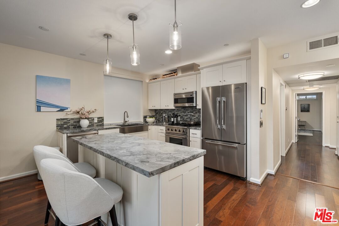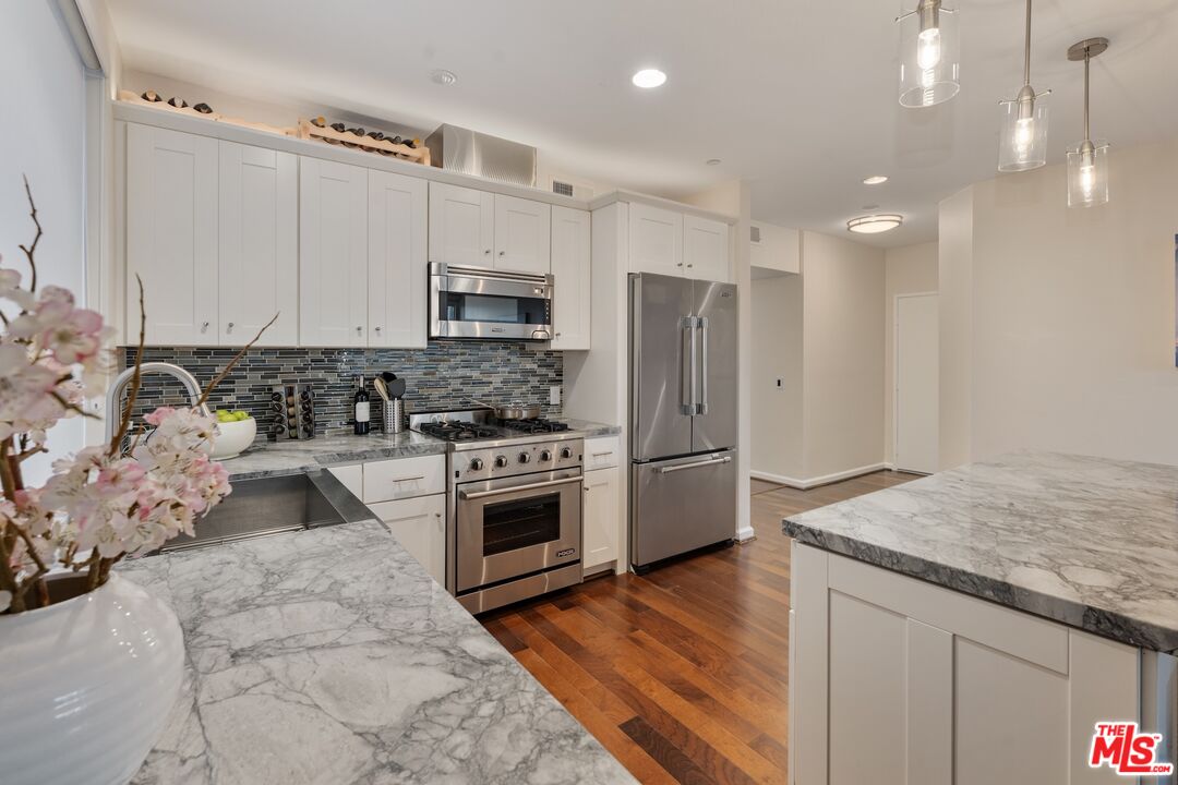 Steps to the sand... Beautifully Renovated, one level, 2 bedroom 2 bathroom perfectly located on the Marina Peninsula. Spacious living room with hardwood floors throughout, large sliding glass door leads out to lovely patio with Ocean View, decorative fireplace plus central a/c. Beautiful kitchen appointed with custom wooden cabinetry, stone counters, and all stainless appliances. Primary bedroom is spacious with two walk-in closets, en suite bath with separate tub and shower. Second bedroom has ample closet space with second bath. Other amenities include, private washer dryer room, elevator in building, two car tandem parking spaces in the garage. Amazing location, walk to Abbott Kinney, Venice, Canals, Marina shopping, wonderful restaurants and coffee shops. Move in with your toothbrush.Interested in this Listing?