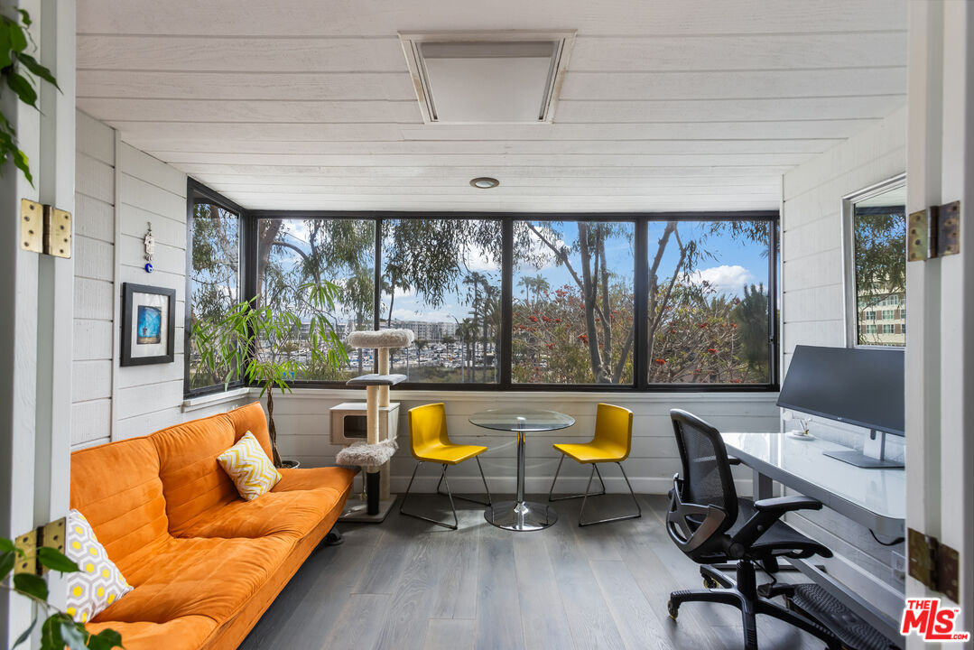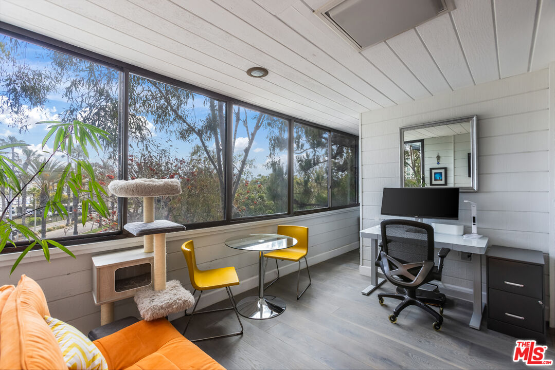 Stunning Top-Floor Marina View Condo with Bonus Office/Playroom. Perched on the top floor in one of Marina del Rey's most coveted locations, this beautifully updated, East-facing single-level unit offers sweeping views of the marina and boats. With 2 bedrooms, 2 bathrooms, and a rare bonus space perfect for an office or playroom (not included in the square footage), this home stands out on the exclusive Silver Strand, blocks from the beach. The spacious living room features soaring ceilings, white oak floors, custom-built-in, and a gas fireplace. French doors lead to an enclosed private patio/deck, and you enjoy picturesque views of the water and sailboats. The updated kitchen features quartz countertops, stainless steel appliances, and ample storage space. The primary suite includes a spa-like en-suite bath and direct balcony access, while the second bedroom offers flexibility for guests or additional workspace. Additional highlights include in-unit laundry with generous storage, two tandem parking spaces, and a private storage unit on the garage level. The secure, resort-style complex offers two pools, two spas, four tennis courts, a gym, and a community room. HOA dues cover cable (including HBO and Showtime), high-speed internet, VOIP phone service, water, trash, and earthquake insurance. Enjoy the serenity of marina living with the convenience of nearby Venice Pier and vibrant shops and restaurants along Washington Square. This is coastal California living at its finest, peaceful, elegant, and just moments from the sand.Interested in this Listing?