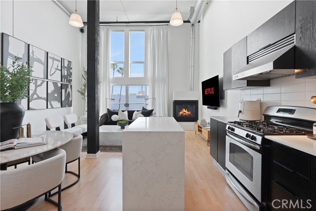 Coastal penthouse living just minutes from the sand. Experience modern luxury in the heart of Marina del Rey with this stunning two-story penthouse, just a 10-minute bike ride to the beach. Soaring 18-foot ceilings and dramatic floor-to-ceiling windows flood the space with golden California sunlight, creating a warm and uplifting ambiance throughout. With approximately 950 square feet of thoughtfully designed living space, this updated 1-bedroom + den/office, 2-bath retreat combines style and functionality. The open-concept kitchen features crisp white quartz countertops, a spacious island with bar seating, soft-close cabinetry, and stainless steel appliances perfect for cooking, entertaining, or a cozy morning coffee before heading out for a beach day. The main level flows effortlessly through the dining and living area, highlighted by a modern gas fireplace. A bonus den offers space for a home office or guest area, while a full bathroom and in-unit laundry with extra storage add convenience and comfort. Upstairs, the private primary suite features a walk-in closet and a sleek en suite bath with updated finishes and a walk-in shower. Throughout the home, new lighting, updated fixtures, and contemporary flooring add a polished, sophisticated touch. Enjoy exclusive access to community amenities including a heated dipping pool, hot tub, gym, BBQ area, fire pits, and a beautifully furnished courtyard. One assigned underground parking space is included. Just moments from boutique shopping, top restaurants, coffee spots, fitness studios, and the scenic coastline, this penthouse is your launchpad to the ultimate Westside lifestyle. This is beachside luxury reimagined don t miss the opportunity to make it yours.Interested in this Listing?