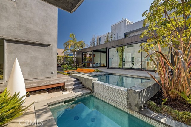 Shiokaze Villa is a FULLY FURNISHED modern, Japanese-inspired beach compound with two homes on adjacent lots (25 & 27), just steps from the sand. This exceptional retreat blends exotic woods and concrete, with elegant ipe wood slats and innovative sliding screens that create a captivating interplay of light, shadow, and privacy, seamlessly merging indoor spaces with ocean views. The main residence, designed by David Hertz, features an open-concept first floor with radiant-heated concrete floors. The gourmet kitchen includes custom Henrybuilt cabinetry, quartz counters, a large central island, and ample storage. The family room with sectional seating and a flat-screen TV opens to an outdoor area with a pool and jacuzzi. The living room boasts Italian furnishings, a 70-inch TV, and sliding glass doors leading to a serene outdoor lounge. The dining area seats eight, perfect for gatherings. Upstairs, the primary suite offers ocean views and a spa-like bath with a Japanese-style soaking tub and steam shower. Two additional bedrooms share a beautifully appointed bathroom, complemented by a convenient laundry room. A dramatic catwalk connects the main residence to a spacious office or guest suite with high ceilings and a private half-bath. The third level features an office space with built-ins and a rooftop patio with a fireplace, ideal for sunset relaxation. The property also includes a striking three-story ipe staircase, extensive built-in storage, automated systems, a two-car garage, and three additional parking spaces. Adjacent is a 660-square-foot Marmol Radziner Rincon 5 prefab unit, offering a sleek kitchen, stylish furnishings, a private guest bedroom with a Heath Ceramics-lined bathroom, and sliding doors opening to a landscaped area with a pool, Jacuzzi, fountain, and fire pit. Check out the video!Interested in this Listing?