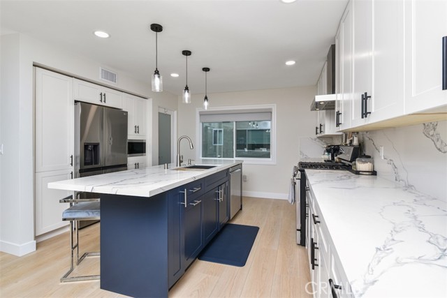 Fully remodeled and fully furnished 3 bedroom, 2.5 bathroom townhome with attached two car garage in the highly desirable Villa Velletri complex! Enter into an expansive living room with high ceilings, cozy fireplace, elegant chandelier and direct access to the large, private patio. Enjoy an elevated and spacious dining room area next to the open concept kitchen, offering the perfect setup for entertaining or family meals. Featuring a completely remodeled and expanded chef s kitchen boasting gorgeous cabinetry and countertops, center island and top of the line appliances. The laundry room features side by side machines and is located adjacent to the kitchen with storage cabinets above. The half bath is also conveniently located downstairs. Retreat to the upstairs master suite and enjoy ample closet space, a private balcony and an ensuite double sink bathroom with walk-in shower. Upstairs you will find an additional bedroom and office room with a guest bathroom equipped with a tub/shower combo. This unit features a private brick finished courtyard, surrounded by mature trees and lush landscape, and an attached 2 car garage with lots of storage and an EV charger. Other upgrades to this turn key, air bnb style home include luxury vinyl flooring throughout, remote control motorized blinds in living room and master bedroom, blackout shades and ceiling fans in all the bedrooms, smart enabled HVAC, locks and lighting. The Villa Velletri complex offers access to 3 heated pools and hot tubs, common grassy areas and a newly remodeled clubhouse. The complex also boasts ample guest parking and a peaceful, Hawaiian resort style experience with lush greenery, mature trees and meandering pathways. The complex is ideally located just a few blocks away from the Marina and the beach, and is a 5 min walk to grocery stores, shops, restaurants, parks and the AMC dine in movie theater! Pet friendly!Interested in this Listing?