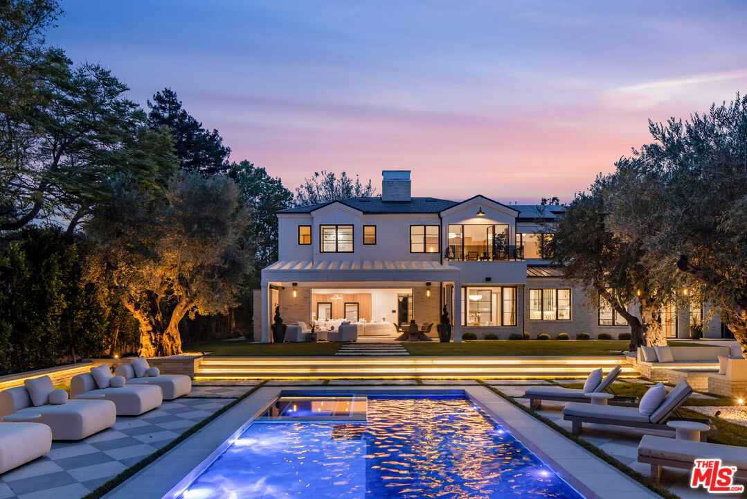 Welcome to 1220 Corsica Drive, a brand-new custom estate in Pacific Palisades' coveted Lower Riviera. Designed by renowned architect Ken Ungar with warmly layered interiors by Matthew Brinkley of Studio Brinkley, this contemporary residence spans approximately 10,293 square feet across three levels seamlessly blending bold scale, refined design, and effortless livability. Mature olive trees set the tone for the dramatic double-height foyer, which flows into expansive living and dining spaces wrapped in custom oak paneling, fluted textures, and a curated mix of luxurious finishes. At the heart of the home is a showstopping chef's kitchen, featuring sculptural marble, custom cabinetry, a walk-in pantry, and a separate staff kitchen ideal for entertaining at scale. Also on the main level are a sophisticated home office, wine bar, oversized laundry room with dual washers and dryers, and a generous guest suite with en-suite bath and direct access to the rear grounds. Upstairs, the primary suite is a true retreat offering a private terrace, spa-like bath with soaking tub and oversized marble shower, dual walk-in closets, and a tranquil sitting area perfect for unwinding or working in peace. The additional bedrooms are all spacious and light-filled, each with its own en-suite bath for comfort and privacy. On the lower level, discover an entertainer's dream: a state-of-the-art theater, full bar and lounge, wine cellar, tasting room, expansive fitness center, and a serene wellness suite with sauna, steam shower, and a private en-suite bedroom. An elevator provides convenient access to each of the three levels. Step outside to a resort-style backyard, complete with a pool and spa, cascading water feature, multiple lounge areas, firepit, outdoor kitchen, and al fresco dining beneath a charming pergola all framed by olive trees and privacy hedging, and enhanced by thoughtful lighting for a striking ambiance after dark. With integrated smart home technology, solar power, and top-tier systems, 1220 Corsica Drive is a true expression of modern luxury offering architectural excellence, resort-caliber amenities, and timeless elegance in one of the Westside's most prestigious enclaves.Interested in this Listing?