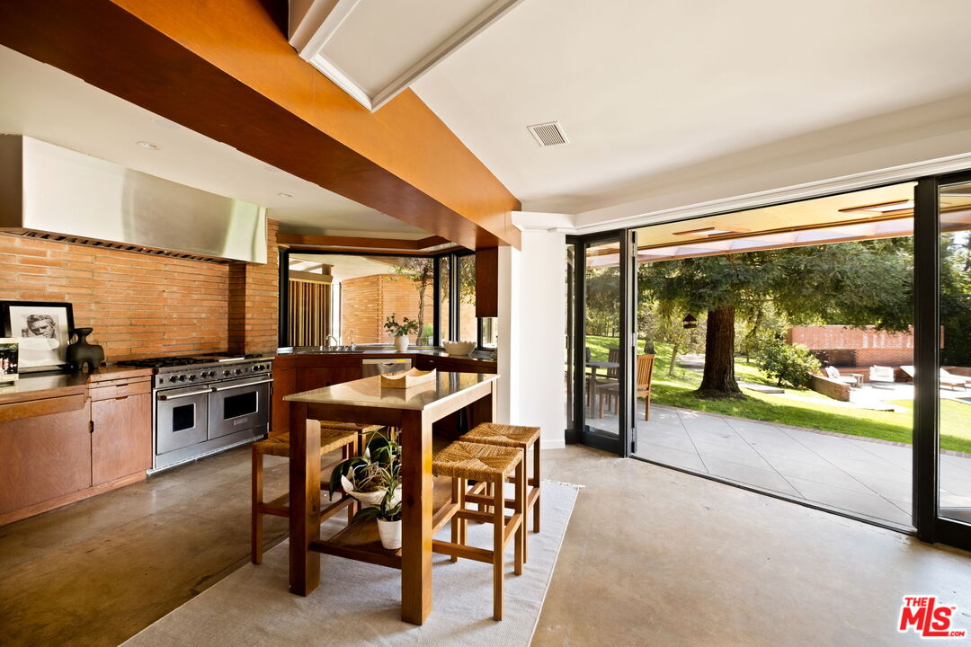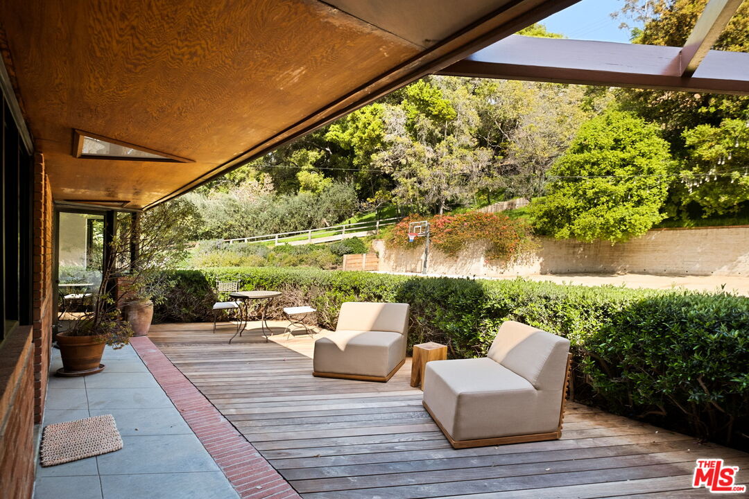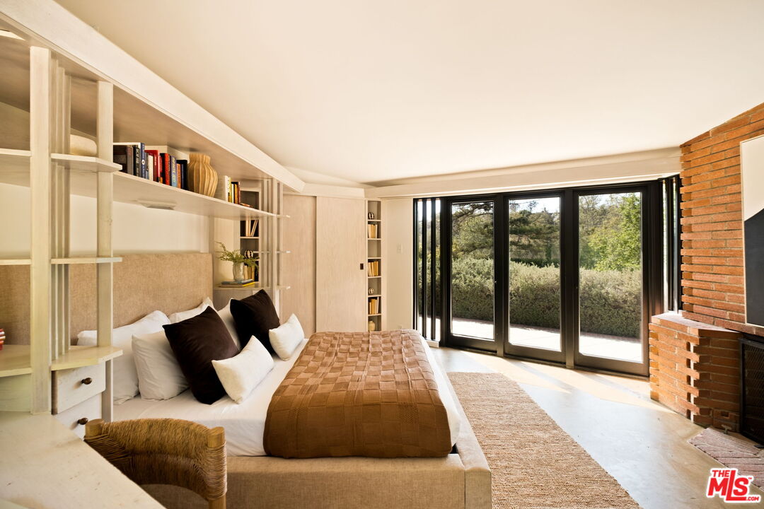 "The Newman Residence, 1948 designed by Lloyd Wright." Tucked behind gates at the end of a long gracious driveway in one of Rustic Canyon's most coveted pockets, this rare Lloyd Wright designed estate, once home to legendary film composer Alfred Newman, offers timeless design in a serene, private setting that feels worlds away. The house rests on nearly two acres, enveloped with mature landscaping including California Oaks, Sycamore and fruit trees. Thoughtfully restored with reverence to Wright's original vision; blending his signature architectural elements using red brick, natural wood and expansive glass with soft organic interiors. The main residence is a study in volume, light and symmetry, where glass walls open to the sweeping grounds, California pool and views of the Santa Monica Mountains. The primary level includes the spacious kitchen, dining room and creative public spaces. The upper level provides a generous bedroom retreat, an open loft like apartment encompassing the entire second floor with several lounging areas and a signature Lloyd Wright brick fireplace as a backdrop and two balconies reaching perched towards the gardens. Two separate pavilions, connected by an overhang to the main structure, potentially offer four additional bedrooms or flex spaces for different family demands and paradigms.Interested in this Listing?