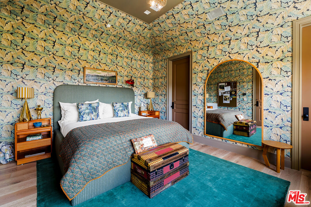 Perfectly situated in the coveted Pacific Palisades Riviera and set behind gates amidst lush and spectacular landscaping is this remarkable estate. The flawlessly executed interiors created by the renowned interior design firm Pierce and Ward, along with the home being a newly built Ken Ungar estate, make this home truly-one-of-a-kind. Every inch of the home, inside and outside, has been transformed to capture the striking canyon views and beams of light glowing through soaring windows and doors from sunrise to sunset at carefully designed vistas throughout the day. Enter through a stunning glass door to ultra-inviting living and dining rooms designed for daily enjoyment, with lavish yet welcoming interiors that appeal to all, featuring a London-chic flair mixed with mid-century design that will surely rival the best home designs executed in all of Los Angeles. The super-inviting family kitchen, with double banquet nooks you won't want to leave all day, offers counter seating, a top-of-the-line Wolf range, multiple ovens, double sinks, and wall-to-wall refrigeration, all opening to a large, stunning family room reminiscent of a chic boutique hotel. This space seamlessly transitions to a large outdoor dining table and chef's barbecue area, ideal for cooking and entertaining guests, all with stunning canyon views. The first floor also features a tucked-away office and a spacious downstairs suite, all carefully laid out with the architect's clear understanding of a masterful floor plan. The second floor boasts a primary suite tucked in its own wing, with dual doors, a fireplace, two walk-in closets: one on each end, a luxurious bath suite, for two, with an oversized double shower, soaking tub, two water closets, separate sink areas, and make-up seating for her, all with beautiful views of the meticulously landscaped grounds and a balcony completing this truly intimate and cozy suite. Across the landing, the second floor also offers a cozy upstairs family room set between three suites, each designed with extraordinary interiors and beautiful tree-top views. An elevator services all three floors, including the lower level, which features the single most inviting screening room, clearly designed for family and friends' movie nights. The lower floor also boasts a large open family room/pool and game room, a stunning bar area, and a wine room, all opening to a cozy patio with plenty of room to enjoy a cold plunge after Pilates in the custom-designed double studio suite and sauna. Down the hall, there is a jaw-dropping four-bed bunk room suite, perfect for late-night sleepovers or additional holiday guests. To complete this lush estate, there is an infinity-edge pool, oversized Baja shelves and spa, a built-in trellis with a fireplace, and a lower-level multiple seating area for guests, parties, and late-night conversations in this award-worthy landscape design encasing the entire estate. Simply exquisite and clearly one of Pierce and Ward's finest design and landscape visions.