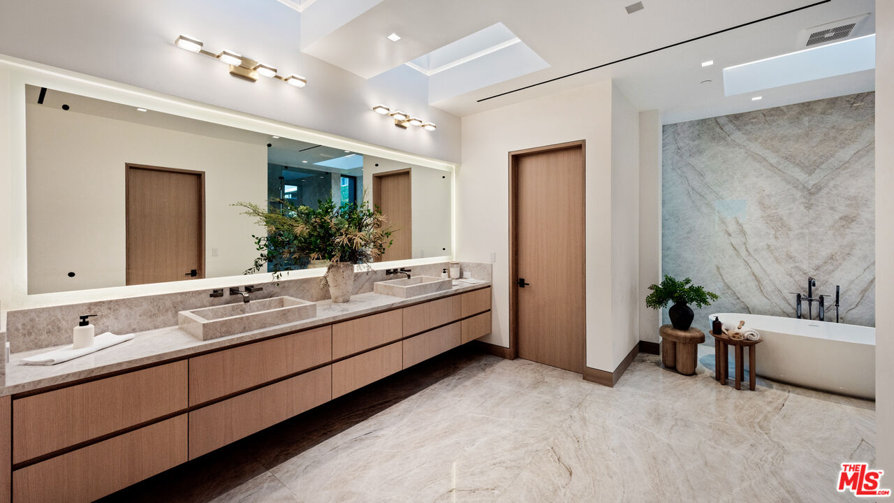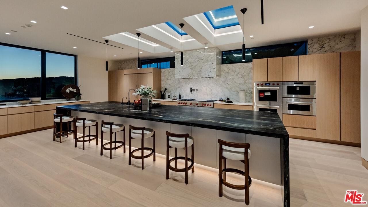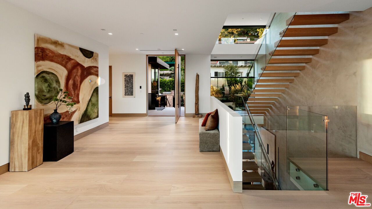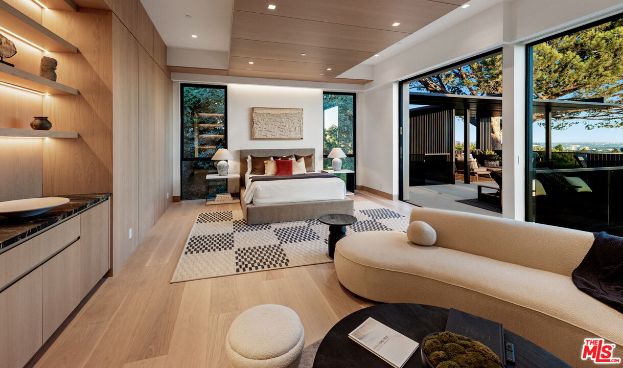 The apex of modern sustainable luxury has arrived in the prestigious Pacific Palisades Riviera. Completed in 2024 with the highest attention to detail, this elevated California Contemporary oasis was designed to seamlessly integrate indoor/outdoor living while maximizing light and views stretching from mountain and city to Santa Monica Bay and Will Rogers State Park. Set behind gates this property encompasses 6 bedrooms, 10 baths, a home office, a separate guest house/wellness center and multiple entertaining spaces that offer moments of tranquility amidst nature. Layered and textured materials harmoniously blend with sleek lines and walls of glass that open to views, lending to subtle warmth and fluidity throughout. Entertain in the open light-filled great room, dining area, and entertainer's kitchen anchored by an 18-ft. Belvedere stone island, a secondary kitchen, a 300-bottle wine room, and wrap around balconies. Descend to the lower floor boasts an inviting home theater and secondary family room/game room with fireplace, elegant bar and soaring 22-ft. ceilings complemented by expansive glass doors that open to the private backyard and infinity-edge pool. Take the elevator to the rooftop terrace with a fire pit, lounge, outdoor kitchen, and "forever" views. The main floor primary suite provides another point of connection to nature with an outdoor view terrace and is appointed with a fireplace, a coffee bar, two walk-in closets, and a luxurious Taj Mahal stone bath. Fully sustainable and tech-forward, this Smart Home features the top tier Luxury Home Automation, Lutron lighting system, solar panels, Tesla Powerwall batteries, and EV charging. A 3-car garage, carport, and parking for up to several vehicles behind the gate ensures both convenience and security. A coveted hillside setting in Pacific Palisades, one of L.A.'s best coastal neighborhoods near Brentwood Country Mart, shopping, restaurants, and places you near beaches, hiking and biking trails, and top-tier schools.Interested in this Listing?