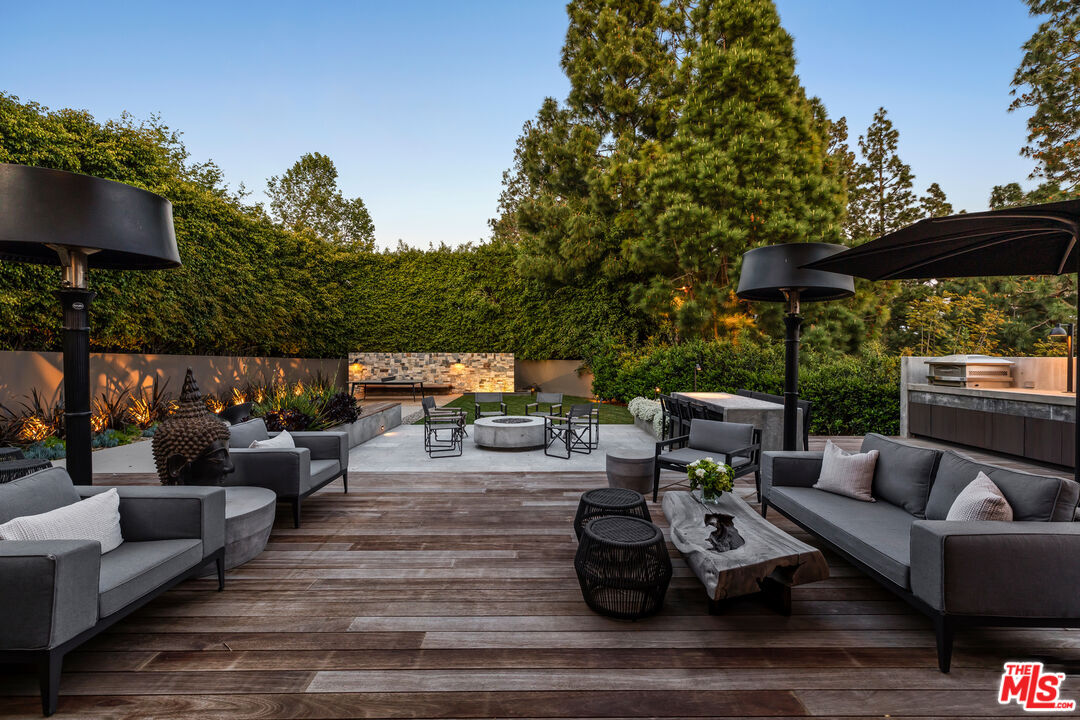 Welcome to this extraordinary home in the highly desirable Riviera Palisades neighborhood. Crafted with meticulous detail and designed by Maryl Georgi, this bespoke residence showcases superb quality and recently underwent a complete renovation leaving no detail untouched. Situated on a corner 1/3 acre parcel with no neighbors on 2 sides this home has ultimate privacy with its fully enclosed and lushly hedged landscaping and gated entry. Spanning 3 levels which are all accessed by a beautifully paneled elevator connecting each floor. As you enter the main level the elegant entrance welcomes you and features a Bleu Chinois aged limestone floor which sets the tone for the luxurious atmosphere throughout. The Wainscot paneled living room has European oak hardwood floors and highlighted by a marble fireplace. French doors open and reveal the private and sunny pool and spa area. There is a library with another fireplace, elegant wood paneling, coffered ceilings, and French windows that frame the view of dramatic Koi and turtle pond. The powder room off the entry retains the same floors as the entry and features a unique petrified wood sink pedestal. There is a second powder room off the kitchen/family area. The kitchen is a haven of light and quality with top of the line appliances including a Blue Star range and oven, separate Sub Zero fridge and freezer, Sub Zero wine fridge, warming drawer, 2 dishwasher drawers, Miele dishwasher, Paonazzo marble countertops and walnut chopping block on the center island. There is separate pantry and butlers pantry to the dining room. Adjacent to the kitchen is a sunlit breakfast room. This all opens to a family room with another fireplace, 300 bottle wine wall, large screen tv, a stylish bar with brass accents that opens with French doors to a fantastic outdoor area which has a lounging area, grassy yard, water wall and built in pizza oven and rotisserie. Moving upstairs the primary has another fireplace, walls of French windows and doors with electronic shades and curtains and a balcony with views of Riviera CC and peek-a-boo ocean view. There are two bathrooms plus two sitting rooms. The other 2 en-suite bedrooms on this level have balconies and French doors. A huge upper landing can be a second living room or office. Down to the lower level to find a 4th en-suite bedroom with a separate area which could be a gym or office, a 10 seat theater and a laundry room with double washers and dryers. Completing the home is a 1000 sq. ft. 3 car garage plus off street parking for another 5 or more cars. And yet there is so much more detail. This is a very special home unlike the cookie cutter homes you are used to seeing. Also for lease at $69,500.