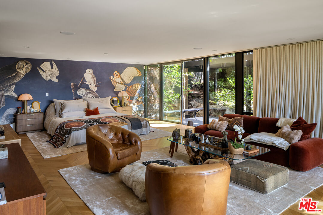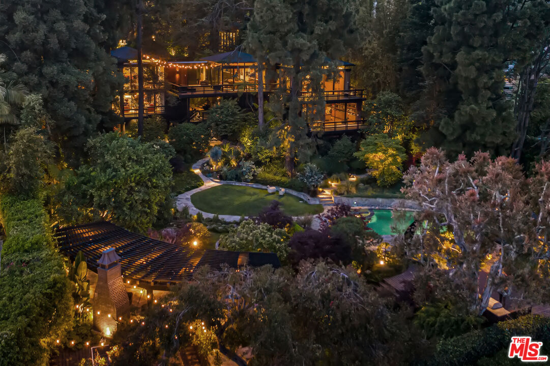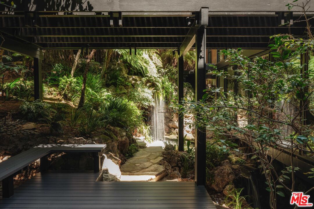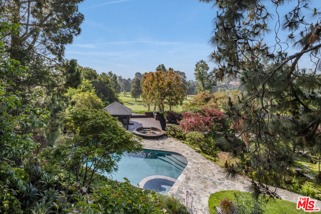 An extraordinary sanctuary of luxury and privacy, 900 Napoli Dr sits nestled on "the rim" of the prestigious Riviera Golf Course. This stunning redwood and glass masterpiece designed by acclaimed architect Paul Wuesthoff in 1963 is truly one of a kind. Through the private auto gate, a breathtaking waterfall cascades to koi filled ponds and streams, creating a serene escape. The lush grounds, originally designed by world renowned landscape architecture firm Eckbo, Dean, Austin and Williams, boasts approximately 18 majestic redwoods, canary island pines and fir trees, seamlessly blending into the 5th hole of the golf course. Inside is a showcase of chic elegance and masterful craftsmanship. Expansive floor to ceiling windows flood the space with natural light, and nearly every room opens to a private deck or patio. The beautifully remodeled kitchen and family room feature top-of-the-line appliances, perfect for both casual and gourmet dining. The warmth of three wood burning fireplaces and the sophistication of chevroned solid hardwood floors throughout only add to the home's undeniable charm. A round glass elevator glides down past the branches of a massive redwood to a dark and sensuous media room. Outside, a private oasis awaits. Complete with a sparkling pool, hot tub, cabana and built-in bbq ideal for entertaining. A private deck offers a glimpse of the ocean, enhancing the home's tranquil ambiance. Up a short flight of stairs you'll find an amazing and private guest house accompanied by it's own lush vegetation and more epic views. The entire house was taken down to the studs and painstakingly reassembled with entirely new systems throughout. A hidden Shangri La in one of LA's most coveted neighborhoods.Interested in this Listing?