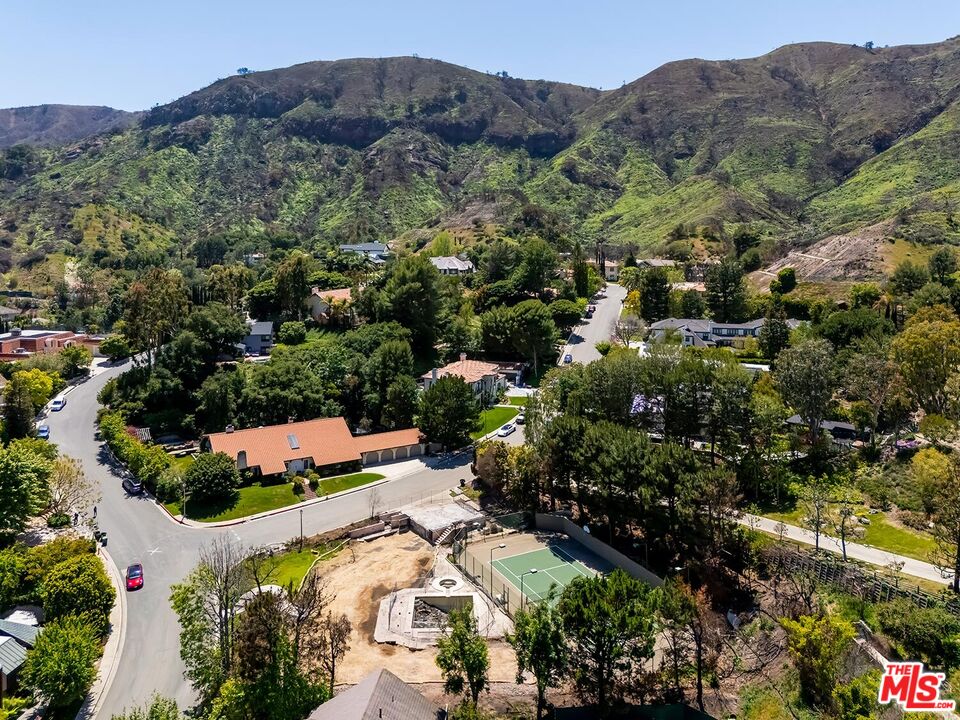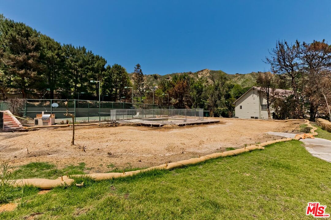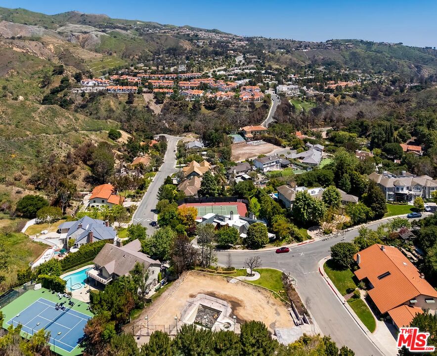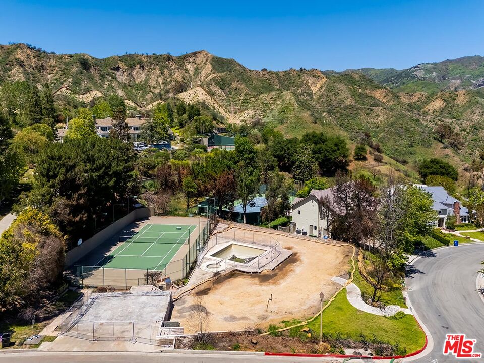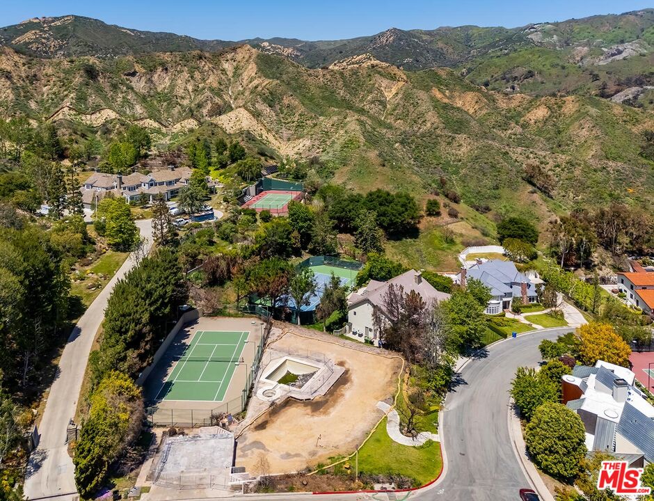 Exceptional half acre plus lot, 25,584 SF. Opportunity to build your dream home in the prestigious "Country Estate" gated community in the Pacific Palisades Highlands neighborhood. Quiet, private and secure with 24 hr guard gated community. This is a blank canvas to create a custom forever home. This home was lost in the Palisades Fire, but the lot has been completely cleaned by Army Corp ready to break ground. The flat corner lot has a standing tennis court with lighting and swimming pool surrounded by panoramic mountain views. Before the fire, the previous home measured at 3920 SF 4 bed + 5 bath, with potential for 10% expansion under current rebuild guidelines which could bring the house to over 4312 SF, providing ample space and options for your next home.Interested in this Listing?