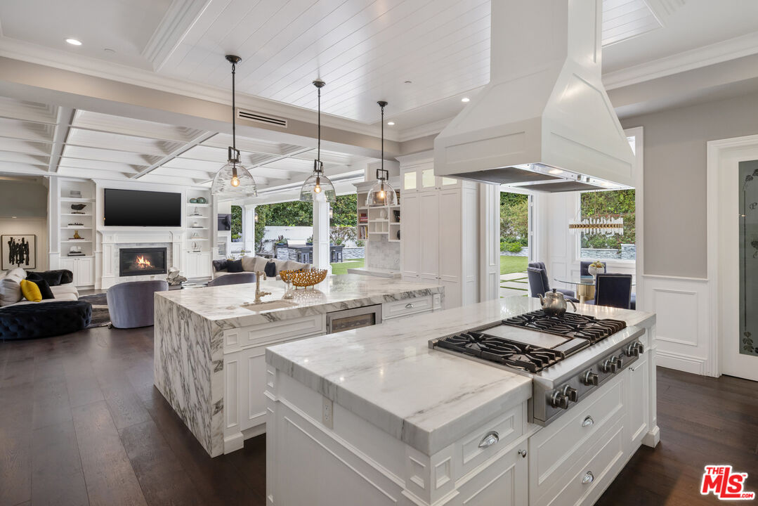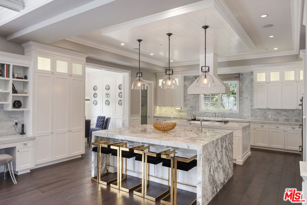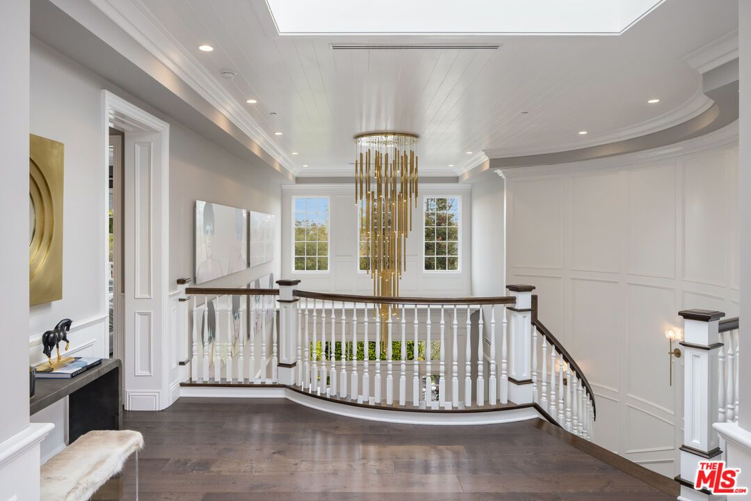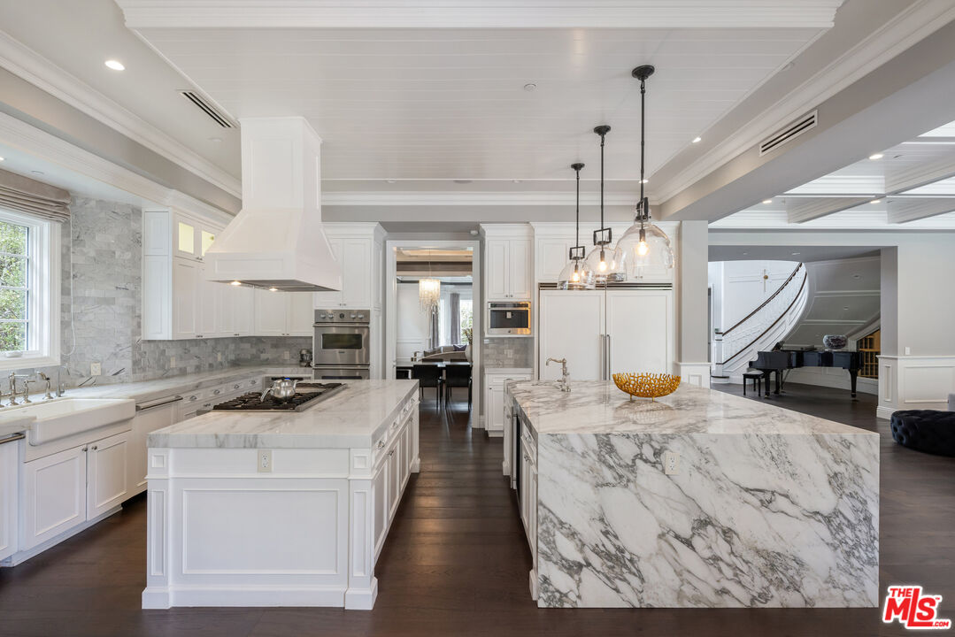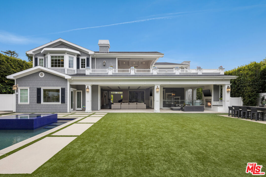 Nestled on Capri Drive, this sophisticated Cape Cod-inspired home by Ray Nosrati of Huntington Estate Properties exudes luxury in the Palisades Riviera, spanning 10,448 sf across three levels serviced by an elevator. A grand entry with soaring ceilings and elegant staircase opens to the expansive living areas, past the formal dining room, and spilling into the beautifully updated chef's kitchen with dual marble slab islands. The expansive living area seamlessly connects to an oversized backyard through wall to wall pocket doors, coming complete with built-in BBQ, ample seating, and a pool/spa. The main level also showcases a humidity-controlled wine storage room and secret room hidden behind a pivot shelf door. Ascending to the upper level, three oversized bedrooms with ensuites lead to a dream primary suiteboasting extremely high ceilings, dual walk-in closets, and more wall to wall pocket doors that open to a private roof deck with peekaboo ocean views. Below, the bottom level comprises a sophisticated bar area, gym with sauna, additional outdoor seating, and yet another hidden room: this time a movie theater with a 130 inch screen concealed behind a secret shelf door. Located perfectly in the Palisades Riviera, this 6-bedroom, 9-bathroom property offers convenient access to the heart of Santa Monica, Brentwood, and the very best of Westside.Interested in this Listing?
