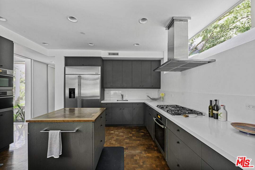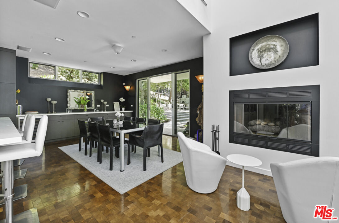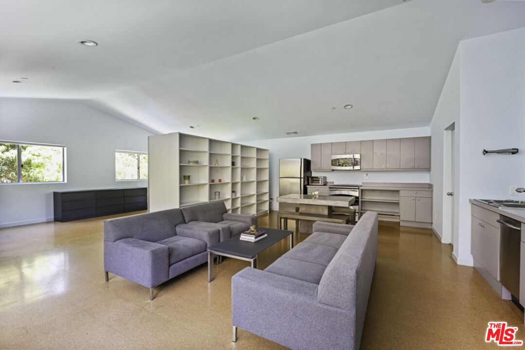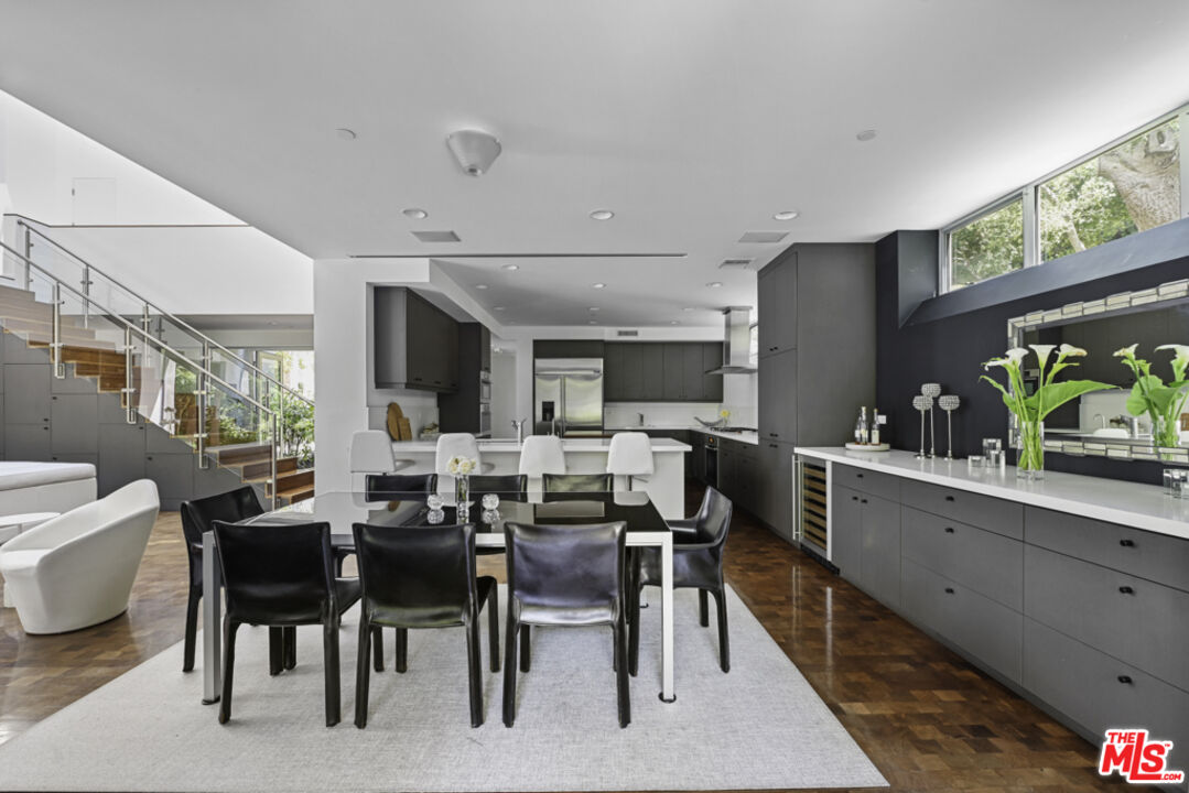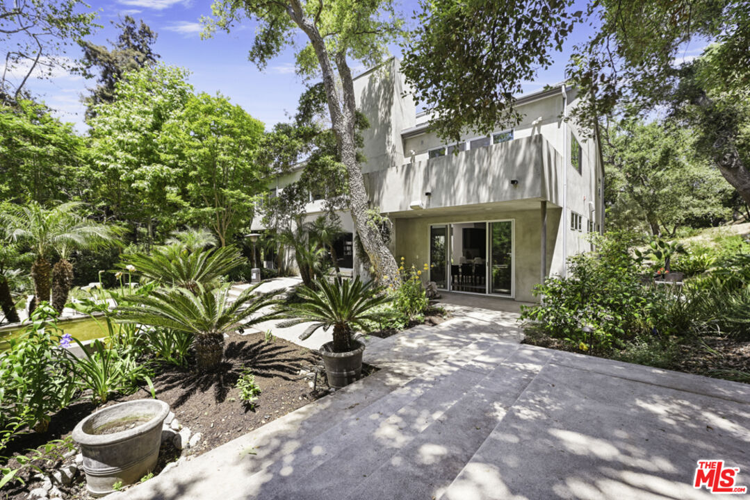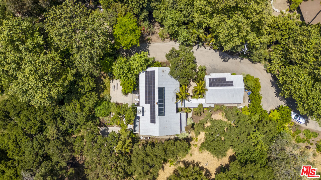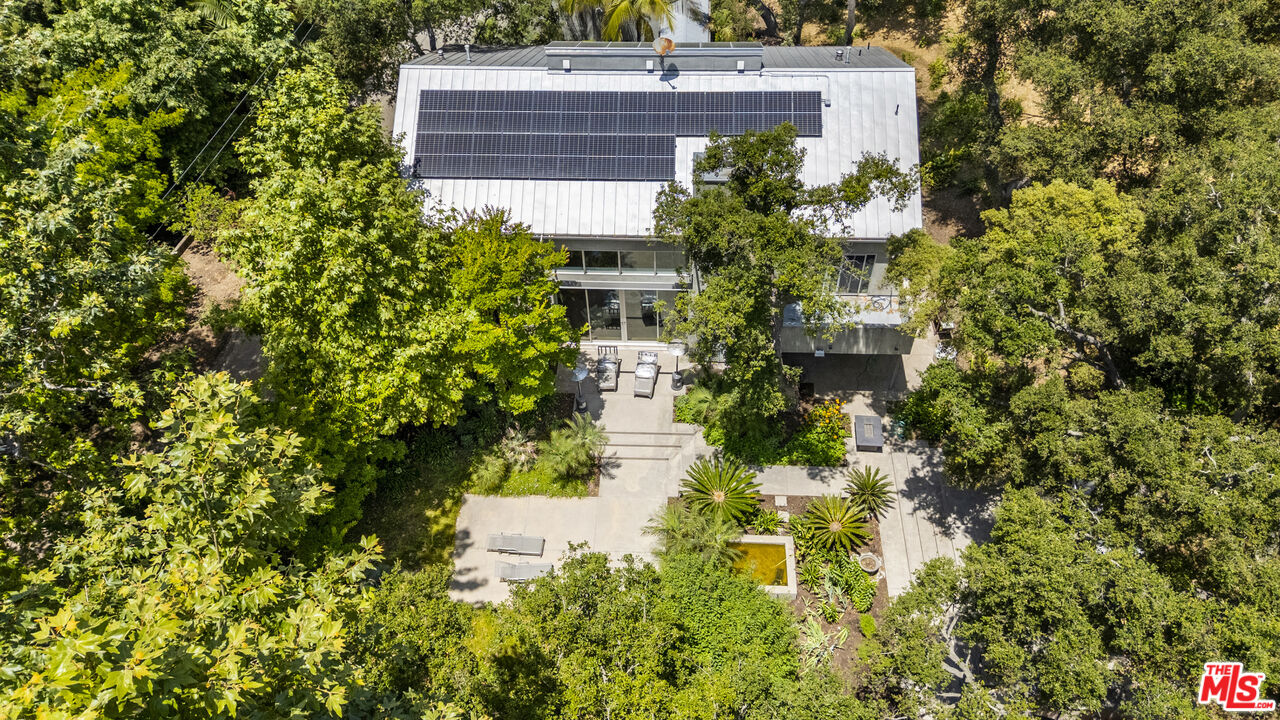 This private compound, designed by an architect for himself and his family, spans over 2.5 acres of lush, wooded grounds in the coveted lower Riviera, tucked away for ultimate seclusion down a 600 foot long driveway. A contemporary masterpiece, the residence feels like a work of art, showcasing refined design elements such as skylights, angular lines, walls of glass, and a sophisticated, loft-like ambiance. Built around mature oak and sycamore trees, a major element of the design is the connection between the living spaces and the outdoors. The main living area offers generous seating and seamless views of the surrounding greenery, anchored by 10 feet tall by 17 feet wide glass doors that "disappear" to connect the room with the outdoors as well as a striking, exposed glass staircase. The chef's kitchen is outfitted with Miele and Monogram appliances, an island and a large counter with seating that opens into the dining room and living area, making it ideal for both entertaining and everyday living. Upstairs, the primary suite is a sanctuary immersed in treetop views, complete with a spa-like bathroom featuring Statuary marble, custom cabinetry, and a soaking tub. Additional bedrooms and bathrooms are equally refined with high-end finishes throughout. Over the detached garage, nestled in the tree tops, is a self-contained studio apartment with its own kitchen and full bathroom offering a flexible space perfect for guests, a home office, a peaceful meditation retreat, or ADU. Outdoors, enjoy a built-in kitchen with BBQ and wood-burning pizza oven, expansive patio spaces, and meandering gardens that offer a true sense of escape amidst nature. Mainhouse is 4,000 sqft. ADU is 900 sqft. Total sqft = 4,900 per the seller.Interested in this Listing?