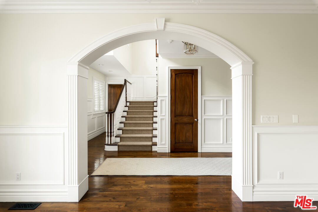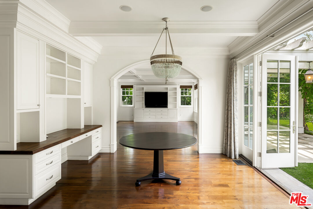 Situated on an untouched and preserved block in the Huntington, this prime corner lot boasts a distinguished New England Traditional that blends timeless charm with modern-day comfort. Originally designed and built by the former owner, the home showcases exceptional craftsmanship, a thoughtful layout, and refined architectural details throughout. The main level features lofty ceilings, rich walnut floors, and expansive, light-filled living spaces, including formal living and dining rooms, a generous family room, private office, two powder rooms, dual staircases, and a temperature-controlled wine cellar. The modern chef's kitchen is equipped with a La Cornue range, Sub-Zero refrigeration, and an oversized center island, opening directly to the main living area. Upstairs, four secondary bedrooms complement a luxurious primary suite with vaulted ceilings, a fireplace, sunlit sitting room or office, private gym, dual walk-in closets, and a newly renovated marble bath with double vanities. French doors open to a beautifully landscaped backyard with a trellis-covered patio, lush lawn, sparkling pool and spa, and built-in BBQ. Designed for both relaxation and entertaining, this exceptional outdoor setting completes a home that truly embodies timeless California living in one of the most desirable neighborhoods of the Pacific Palisades.Interested in this Listing?