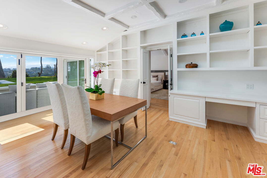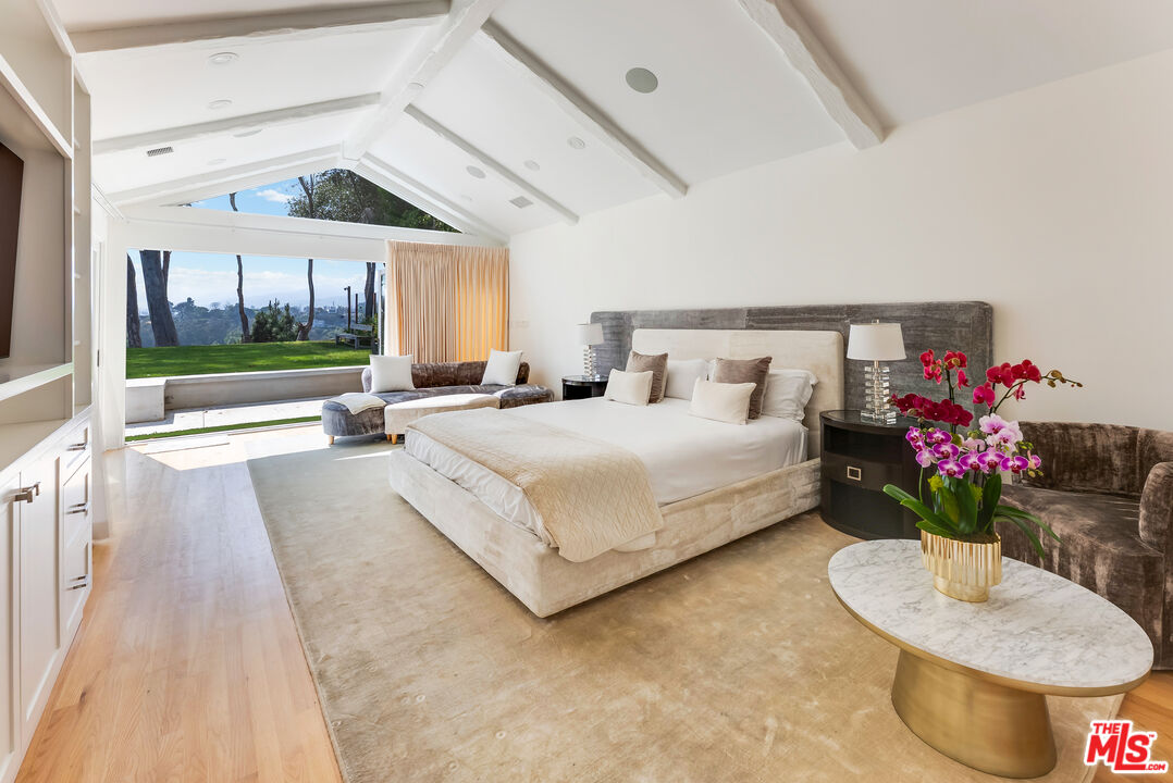 Private and gated single story Traditional beautifully remodeled. Expansive floor to ceiling stacking doors open to a magnificent backyard with stunning views facing west . Located on the " rim" the yard is large flat with gorgeous pool, outdoor chefs kitchen, dining area and firepit and multiple lounges. The main house has an easy open floorplan with all the rooms you will use to live and entertain. Wonderful Living room, formal dining room, built in office and great kitchen- breakfast that is open to the family room. The primary is large with floor to ceiling windows overlooking the back yard, a great bath and 2 walk in closets. There are 2 more ensuite bedrooms and baths on this side of the house. There's a large 4th bedroom ensuite off the family room and a guest bedroom/ bath in the converted garage. Plenty of parking in the circular driveway as well. This home is comfortably furnished and is available long or short term lease.Interested in this Listing?