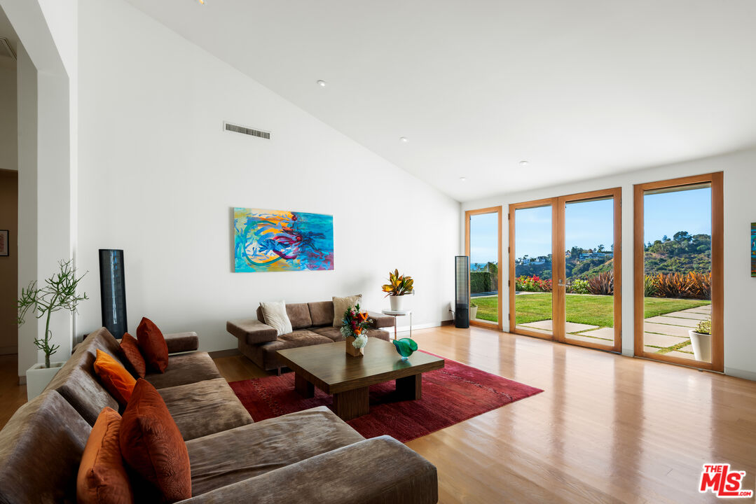 This Pacific Palisades custom-built luxury home in the beautiful Marquez Knolls neighborhood is available for short-term and long-term rent to qualified applicants. The modern architectural home comes fully furnished, including custom-made Italian couches, bedframes, dining tables, chairs, and coffee tables. Built in 2007, the home is in excellent condition with hardwood and stone floors throughout and carpet in the bedrooms. Nearly every room offers beautiful ocean and mountain views, including the living room, master bedroom, and junior master bedroom. The master bedroom features a fireplace, heated floors, a jacuzzi tub, and a steam shower. The kitchen is equipped with modern appliances, including a Sub-Zero refrigerator, WOLF stove, and built-in Miele coffee/espresso machine. The property includes a two-car garage and a large gated driveway that can accommodate three additional vehicles. The large backyard has two levels: the main level includes a full BBQ and bar area with seating for entertaining while enjoying the ocean and mountain views, and the lower level features a wooden loggia with a firepit and built-in seating, ideal for watching the sunset. Fruit trees line the backyard staircase, adding to the charm of this exceptional home.Interested in this Listing?
