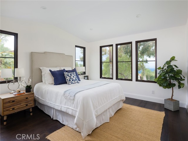 Experience the natural beauty of Lunada Bay in this exceptional Ocean View Modern Spanish estate designed by Pritzkat Johnson Architects. Set above the street behind a privacy hedge, this beautiful home offers ocean views throughout the property while backing up to open spaces with groves of Eucalyptus and miles of Palos Verdes' beloved trails. Inside, a soaring 2-story foyer welcomes guests alongside a winding staircase, all set against rich, wide-plank oak floors. with views out to the yard and surrounding hills. The impressive gourmet kitchen is the focal point of the great room. Centered around an island with finishes including Calacatta quartz counters, Subzero, Wolf, and Bosch appliances, this is the kitchen where your friends and family will want to be. The light filled living room with the blue waters of the Pacific visible on the horizon is the perfect place to gather, and the gas fireplace is the perfect touch for cooler days. The expansive family room opens to the trellised patio and yard, and the built-in work center keeps a busy household on task. A versatile fifth bedroom or office downstairs with an adjacent full bath offers ideal guest accommodation or a space for work from home days. Upstairs, the magnificent primary suite with panoramic Queen's Necklace and ocean vistas redefines luxury. Enjoy sunsets over the Pacific from your private balcony or unwind by the cozy fireplace. The spa-inspired primary bath offers a luxurious shower, a deep soaking tub, and a generous walk-in closet. Three additional well-appointed bedrooms, one with an ocean view, and an upstairs laundry room provide both comfort and practicality. For the discerning enthusiast, a gated driveway ensures ample parking, and the finished garage, with its epoxy floor, is ready to transform into a home gym. An adjacent bonus room provides additional flexible space, perfect for a game room or dedicated workspace. The nearly half-acre lot is your own private playground, surrounded by Palos Verdes' natural beauty and offers endless possibilities to add a pool, sport court, ADU, or simply a huge space for play. Just across the street, a trail leads to miles of scenic pathways and is convenient to shops and restaurants. As a resident of Palos Verdes Estates, you'll enjoy exclusive access to the prestigious PV Golf Club, PV Tennis Club, and PV Beach and Athletic Club, alongside hundreds of acres of pristine open space.