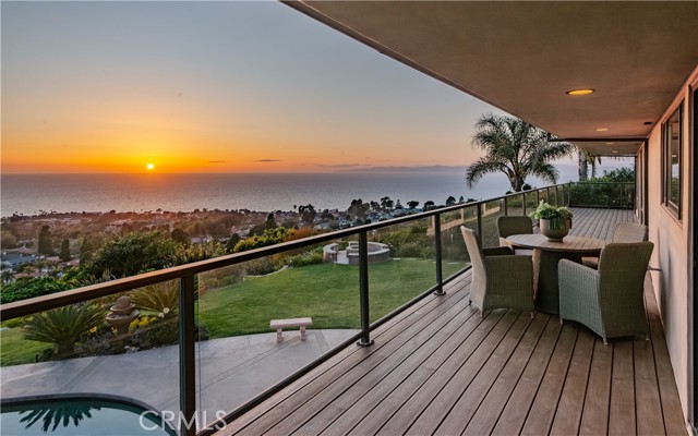 Breathtaking, panoramic ocean & sunset views from nearly every corner of this beautifully updated estate! This thoughtfully designed property has a great floor plan, accentuating the indoor-outdoor lifestyle, ideal for both relaxation and entertaining by the amazing pool, spa or fire pit. The entry level includes a spacious living room, formal dining room, family room, and a stunning, newly remodeled kitchen, seamlessly blending style and functionality. Outfitted with stainless steel appliances, custom cabinetry and sleek countertops, the new kitchen is a true showstopper. The entry level also includes a private office, (possible 5th bedroom) a three-car garage, and a full-width exterior deck that invites al fresco dining and sunset gatherings. Downstairs, the home offers a secondary family room and four additional bedrooms, including a luxurious primary suite with breathtaking views, a spa-like bathroom featuring a jacuzzi tub, sauna, dual vanities, and a spacious walk-in closet. The expansive backyard includes the sparkling pool & spa, built-in barbecue, huge lawn, fire pit, and unmatched views of the ocean and Palos Verdes bluffs. Meticulously maintained and recently upgraded, this home has been dialed in from top to bottom offering the perfect blend of timeless elegance and modern luxury.Interested in this Listing?