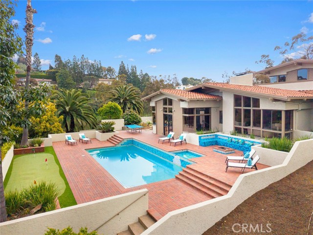 Welcome to the place where pool parties stretch into game nights, grandparents have their own space, and kids grow up riding bikes to the park just next door. This sprawling, usable 1.3-acre, 6317 sq. ft. estate in the heart of Montemalaga was built with families in mind. The main house has 6 bedrooms and 4.5 baths. From the moment you walk in, there s an undeniable warmth. Skylights and natural light brighten the vaulted-ceiling living room, where you can curl up by the fireplace and look out toward the pool and garden. There s even a cozy fire pit outside, perfect for roasting marshmallows or unwinding at the end of a long day. The Chef s kitchen features high-end appliances, a huge island with bar seating, double dishwashers, a walk-in pantry, and a casual dining nook that opens to the backyard patio. It s ideal for birthday parties, Thanksgiving dinners, or lazy Sunday breakfasts. You ll also love the layout: Upstairs: Two bedrooms with a Jack & Jill bath and a spacious primary suite with spa bath, steam shower, dual walk-in closets, and a serene private balcony. Downstairs: A secondary primary suite, plus two more bedrooms (each with walk-in closets and outdoor balconies), a movie theater room, and a large game room with vaulted ceilings, fireplace, and bar. Step outside, and you ll find a resort-style pool and hot tub, putting green, a fire pit, and a full-size combo basketball/tennis court that can be converted to pickleball. Keep the lights on because the 48 solar panels will save you thousands annually. Need space for in-laws, guests, or a separate home office? The detached guest house is its cozy escape, with a kitchenette, hardwood floors, and cabinetry in the bedroom, bath, and private sauna. Plus, there s a half-bath right outside, perfect for pool-goers. This is the home where your kids and their friends gather and where every square foot has been designed for your family. It is located in the top-rated Palos Verdes Unified School District. If you ve been waiting for a home to create new family memories, it s here and ready for you.Interested in this Listing?