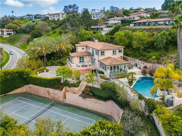 Luxury, elegance, and privacy await you in this exquisite 5 bed, 5.5 bath, 6,280 Sq Ft ocean view estate located in the prime neighborhood of Montemalaga in the heart of Palos Verdes Estates. Crafted in 2005 by Architect Edward Carson Beall, this transitional home boasts premium construction and an elevated level of architectural detailing that spared no expense. Nestled at the top of a grand, gated driveway and surrounded by lush landscaping for added privacy, this house exudes luxury. Enjoy the resort-worthy features throughout the property, encompassing a full sized tennis court, attached 3-car garage, temperature-controlled 2,000+ bottle wine cellar, pool and spa. The home s most recent upgrades offer a timeless and modernized feel, while preserving its original craftsmanship, including a newly painted interior, refinished hardwood flooring, and updated light fixtures throughout.The main entrance welcomes you in with abundant natural light, high ceilings, custom moldings, limestone, and hardwood floors. Sophistication meets relaxation with its formal living room, office, gourmet kitchen equipped with high-end appliances, and separate formal dining room that leads out to a cozy outdoor living area with picturesque views. The family room is ideal for entertaining, with a hidden projector screen, full wet bar, and elegant French doors that open out to the pool, spa, tennis court, outdoor dining area, barbecue, fireplace, and Queen s Necklace view. In addition, several charming fountains adorn the property creating an atmosphere of tranquility and serenity. Wake up to exquisite views of Malibu and the South Bay in the primary suite which includes a huge walk-in closet, dual-vanity sinks, and spa-like bathtub. With 3 more bedrooms plus an additional guest en-suite independently located on the bottom floor, this home truly has it all. This private estate is just a few short minutes from top-rated schools, shopping, restaurants, and all other amenities that embody a Palos Verdes lifestyle. Come discover the perfect balance of luxury and convenience today!Interested in this Listing?