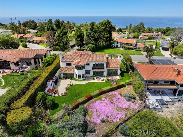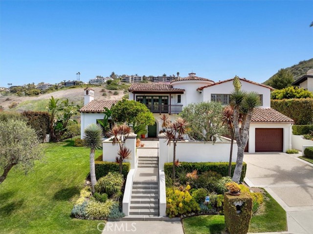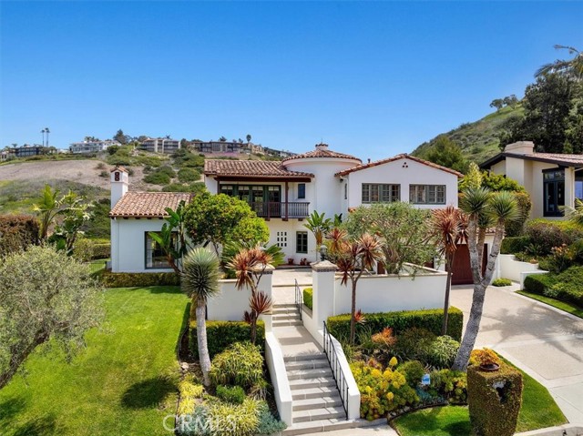 Welcome to 2839 Via Victoria, a romantic Spanish Villa tucked within the heart of Lunada Bay. A timeless architectural masterpiece with a commanding presence by distinguished architect George Sweeney, this home immediately captures the eye with its rotunda entry, smooth stucco exterior and clay tile rooflines. A stone staircase winds through a private courtyard, where the scent of citrus trees and the gentle sound of a Spanish-tile fountain create a warm and inviting introduction. Inside, rich character and thoughtful craftsmanship unfold. Arched doorways, barrel-vaulted hallways, and soaring beamed ceilings connect a series of light-filled spaces designed for elegant yet comfortable living. The formal living room, anchored by a towering fireplace, is framed by walls of windows offering peek-a-boo ocean views to the west and serene canyon vistas to the east. Flowing seamlessly from the living room, the formal dining area impresses with coffered ceilings, a rustic chandelier, and French doors that open to the backyard and canyon beyond all thoughtfully aligned with the arched front entry to offer a subtle sense of symmetry and balance. The kitchen is both functional and beautiful, featuring custom cabinetry, a marble-topped center island with bar seating, high-end Sub-Zero and Wolf appliances, an appliance garage, a massive pantry, and peaceful green views of the backyard. Double-arched openings lead to a spacious family room with French doors that invite indoor-outdoor living. The backyard itself offers flat, usable space with a built-in BBQ, generous patio, and sweeping canyon vistas. At the center of the home is a sunlit rotunda with a view of the courtyard and seating that invites you to relax beneath a soaring, vaulted beam ceiling. A gently curved staircase in the rotunda leads to the bedroom level. The primary suite enjoys a private position on the second floor, with vaulted beamed ceilings and windows that invite soft ocean breezes and canyon views from either side. Its spa-like bathroom features a soaking tub, walk-in shower, dual vanities, and a thoughtfully designed walk-through closet. Three additional bedrooms one currently serving as a home office share a remodeled dual-vanity bathroom, completing the upstairs wing. With its rare blend of architectural integrity, meticulously upgraded understated luxury, and natural beauty, 2839 Via Victoria offers a timeless living experience in one of Palos Verdes Estates most sought-after enclaves.Interested in this Listing?