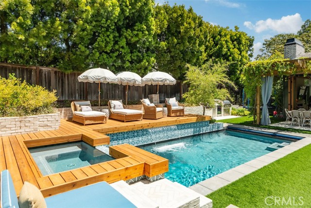 Situated on a sun-drenched corner lot in the coveted Valmonte neighborhood of Palos Verdes Estates, this home is a masterfully curated residence where modern luxury meets natural beauty. Completed in 2019, this design-forward home blends organic textures, curated finishes and thoughtful functionality across a spacious, light-filled layout. Surrounded by lush landscaping and an elevated design aesthetic by Liane Baumann Interiors, the property offers both privacy and presence. Inside, soaring ceilings many pitched to add architectural interest enhance the open, airy feel. Wide-plank European oak floors flow throughout, complemented by walnut cabinetry, Douglas Fir beams and a soft, natural palette. The heart of the home is an expansive great room anchored by a striking fireplace and seamless access to the outdoors via a massive Kolbe x La Cantina sliding door. The kitchen is outfitted with high-end Thermador appliances, a built-in coffee machine, an oversized Laminam topped island and a walk-in pantry perfect for both everyday living and effortless entertaining. Each detail has been carefully considered from Schumacher, Farrow & Ball and Serena & Lily wallpaper to Restoration Hardware lighting and Brizo fixtures. With 3 fireplaces (living, primary, and playroom), smart home Control4 wiring, ceiling speakers in nearly every room and hard-lined Ethernet throughout, this home is as smart as it is stylish. The outdoor spaces are an entertainer s dream. A cedar deck surrounds the saltwater pool and spa, which features custom Kismet tile, waterfall, multi-color lighting and Pentair remote control. A passion fruit vine covered pergola with infrared heaters offers an elegant place for outdoor dining. The outdoor kitchen includes a built-in Blackstone griddle, gas grill, refrigerator drawers, glass front drink refrigeratior, outdoor beer system with European tap and under-mount LED lighting. Sunbrella-cushioned seating surrounds a gas fire pit, creating a year-round destination. Located just moments from local trails, golf, and Palos Verdes top schools, this Valmonte gem is a rare opportunity to own a truly turnkey home with timeless appeal and unmatched craftsmanship.Interested in this Listing?
