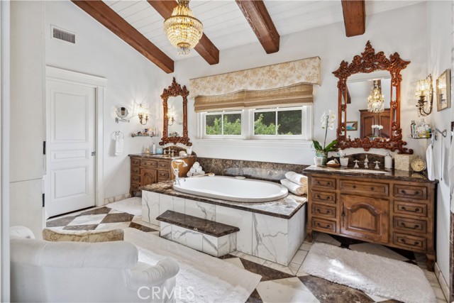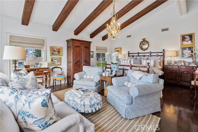 Set on an expansive corner lot in the highly sought-after Valmonte neighborhood, this iconic Cape Cod-style residence seamlessly combines timeless elegance with luxurious modern living. A classic Dutch door with leaded glass opens to a warm and inviting interior. The light-filled living room features a wood-burning fireplace, bay window, and a built-in surround sound entertainment system. A secluded guest bedroom and full bath on the main level offer privacy and comfort for visitors or in-laws. The formal dining room is ideal for entertaining, with seating for up to 12 and custom corner built-ins that add charm and function. The gourmet kitchen is a chef s dream appointed with a Viking range and griddle, double ovens, dual dishwashers, marble countertops, limestone center island, and premium stainless steel appliances. Just off the kitchen, a cozy den offers the perfect spot to relax or read, with French doors that open to a spacious side yard and PV stone patio ideal for seamless indoor-outdoor living. The resort-style backyard is a true retreat, featuring a sparkling pool and spa, built-in grill, fire pit, and a beautifully manicured lawn. Upstairs, the expansive primary suite enjoys sweeping city lights views, vaulted beam ceilings, Pine hardwood floors, and a comfortable sitting area. Antique 8-foot Belgian wood doors lead to a luxurious primary bath with dark Emperor marble floors, Nu Heat radiant heating, a Jacuzzi tub, an oversized walk-in shower with dual showerheads, and a vast walk-in closet. A separate children s wing includes a playroom and a full bathroom. Additional features include custom hand-crafted cabinetry, new central A/C, and an attached 2-car garage. This rare Valmonte gem offers a perfect blend of classic Cape Cod style and stylish California living.Interested in this Listing?