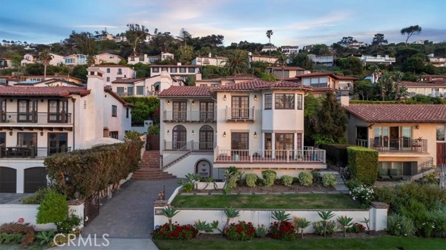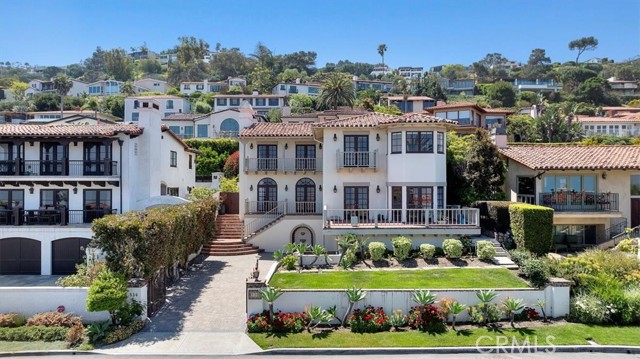 Welcome to 536 Via Media, a timeless coastal retreat nestled in one of the most prestigious enclaves of Palos Verdes Estates Lower Malaga Cove. Ideally situated just steps from the PV Beach & Athletic Club and RAT Beach, this home offers not only exceptional walkability but also seamless access on and off the Peninsula. But above all, it boasts the view sweeping, unobstructed vistas of the Pacific Ocean, Santa Monica Bay, and the iconic Queen s Necklace by day, transitioning into a dazzling display of city lights by night. Originally custom built in 1986 in the quintessential Palos Verdes Spanish style and thoughtfully remodeled since, the home blends classic charm with modern luxury. Recent updates include a beautifully reimagined kitchen and bathrooms, featuring top-tier appliances from Wolf and Sub-Zero, elegant finishes, and refined details throughout. The home s striking curb appeal is immediately apparent: smooth white stucco, a traditional clay tile roof, arched doorways, and a stately paver driveway anchored by a decorative fountain, all setting the tone for the architectural character within. A gated entry leads to the main level, where ocean views greet you from nearly every room. The formal living room, with its French doors and arched transom windows, opens to the front patio and frames breathtaking views of the coastline. The dining room, adorned with a graceful chandelier, flows into the kitchen, which is appointed with a charming breakfast nook, marble backsplash, generous counter space, and abundant storage. Both rooms open to an expansive brick terrace, perfect for entertaining against a backdrop of ocean vistas and Fourth of July fireworks. This main level also features a guest bedroom and a tastefully remodeled ¾ bath, which doubles as the powder room for the floor. Upstairs, you'll find three en-suite bedrooms and a convenient laundry room with double washers and dryers. Two of the suites serve as primary bedrooms, both showcasing the most dramatic views in the home. The lower level offers a private one-bedroom suite, a mudroom, and access to the spacious three-car garage. The backyard is a true oasis complete with a built-in BBQ area, cozy fire pit, and sparkling pool and spa, all surrounded by lush landscaping on a 6,724 sq ft lot. With its iconic location, exceptional layout, luxurious upgrades, and panoramic views, 536 Via Media is a rare offering that encapsulates the very best of Palos Verdes coastal living.
