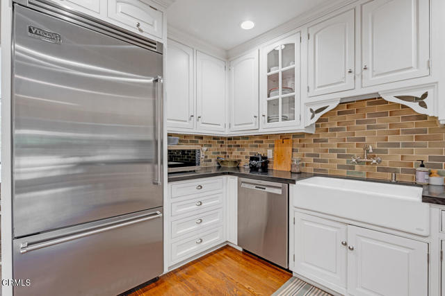 Charming English cottage with easy care yard. Updated kitchen with Viking appliances. Hardwood floors throughout. Living room with handsome fireplace and high ceiling. Newer updated baths with custom tile work.Two bedrooms plus a den off the kitchen. Large formal dining room with loads of natural light. The 2 car garage has a newer three quarter bath , and possibility of converting to an ADU. Pull down attic storage also . The perfect condo alternative.Interested in this Listing?