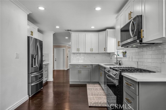 This beautifully maintained home features recent upgrades, including a new roof, new insulation, fresh interior paint, a renovated kitchen, and clean desert landscaping for low-maintenance living. Move-in ready, the home offers a master bedroom with an attached bathroom, a spacious rear bedroom, and a home office. The large living room flows into the dining area and walk-in kitchen, which features shaker-style cabinetry, soft-closing drawers, a spice cabinet conveniently located to the left of the range, and quartz countertops in the elegant Calacatta Swan finish. The backsplash is a ceramic subway tile in the "Artisan Frost" color. Also included is a Samsung front Control Slide-In Gas Range with Convection & Wi-Fi in fingerprint-resistant stainless steel, and LED recessed lighting throughout. SMART home features include: Casta Lutron smart switches in the living room, kitchen, master, and bedrooms ADT security system with vibration-enabled window and door sensors WiFi-enabled microwave and oven for light control and cooking alerts MyQ garage opener for remote access via smartphone B-Hyve 5-zone smart sprinkler system with weather-based control and phone access? Nest thermostat with location-based heating/cooling settings All systems are Google Home compatible for seamless smart living.Interested in this Listing?