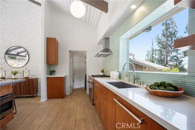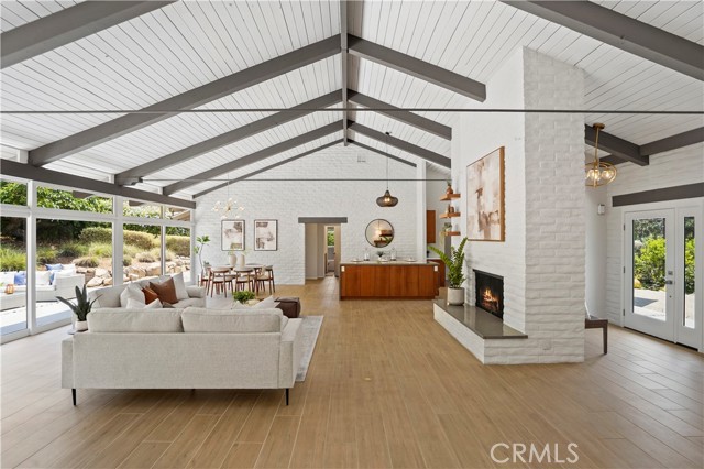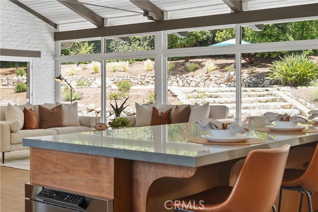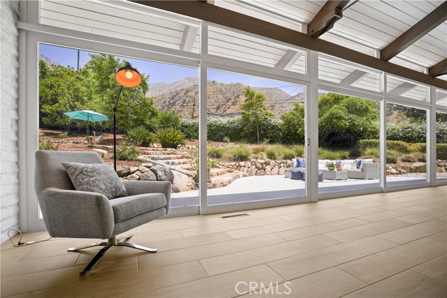 Set on over 32,000 sq ft of usable land with 26 mature fruit trees including avocado, plum, peach, loquat, and citrus, this mid-century modern masterpiece is a private paradise with a gorgeous pool and breathtaking views of the foothills! Enter through the automated gate onto a 10-vehicle motor court laid with elegant pavers. Step inside an awe-inspiring great room with 20 ft vaulted ceilings, exposed beams, custom light fixtures and ceramic white oak tile floors, anchored by a gas-starting fireplace. Floor-to-ceiling glass frames lush mountain views and floods the entire width of the house with natural light. Host gatherings that easily flow between indoors and outdoors with massive sliding doors and multiple outdoor spaces. Enjoy a gourmet kitchen featuring a waterfall quartz island and hidden custom walnut cabinets, Japanese porcelain tile backsplash and stainless steel professional grade KitchenAid appliances that total ~$20k. Family and guests will appreciate the privacy offered by a split-bedroom layout in opposite wings. Soak in the views every morning from your marvelous primary suite showcasing floor-to-ceiling glass sliding doors with automated black-out shades and access to a bonus covered patio. The spacious spa-like bathroom features a floating dual vanity, bold subway tile, a frameless glass walk-in thermostatic dual rain and hand-held shower, separate water closet and massive custom walk-in closet. The other two bedrooms have large picture windows with great natural light and custom built-in shelving. They share a bathroom with double sinks, honeycomb tile flooring, and a thermostatic tub/shower. A generous laundry/mudroom offers plenty of storage and direct access to the garage. The outdoor space is a fully hedged and gated 0.75 acre oasis including multiple patios, a sparkling pool, a turf area for picnics or practicing your short game and there s even room to add a pickleball court by the avocado grove! Enjoy the best of both quiet and convenience with an easy 8-minute commute to the 210 freeway, Trader Joe s, Whole Foods, Old Town Pasadena, hiking and all the beautiful parks of Pasadena. This home offers luxury, comfort and stunning design that brings the outdoors into every room. Schedule your private showing today!Interested in this Listing?